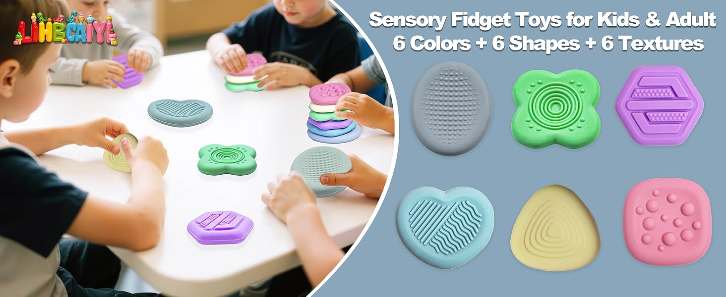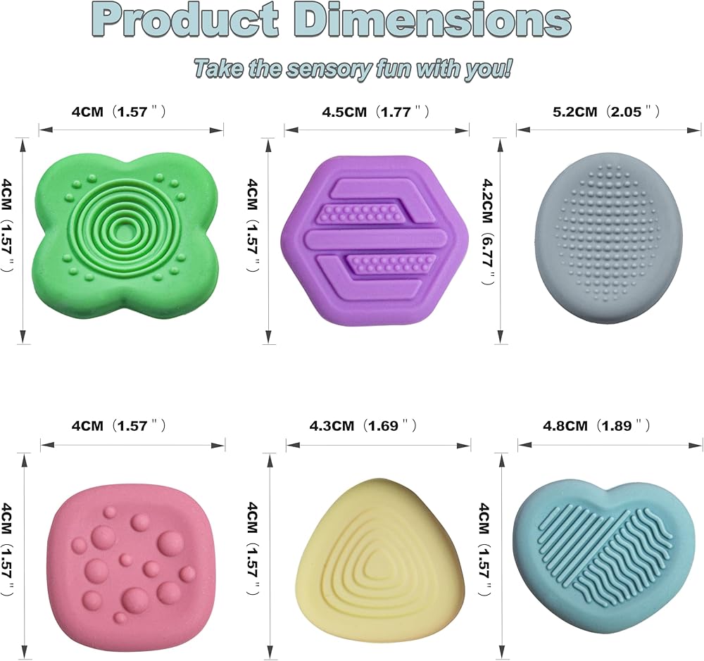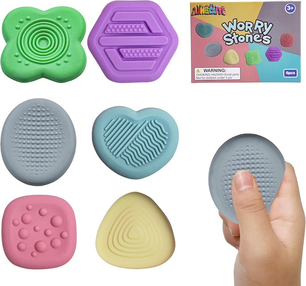أحجار القلق الحسية: 6 أحجار قلق حسية فريدة توفر مدخلات لمسية أساسية. يتمتع كل حجر بملمس مميز لمساعدة الأطفال والطلاب والكبار على تخفيف القلق وإيجاد الهدوء وتحسين التركيز من خلال التململ الذهني.