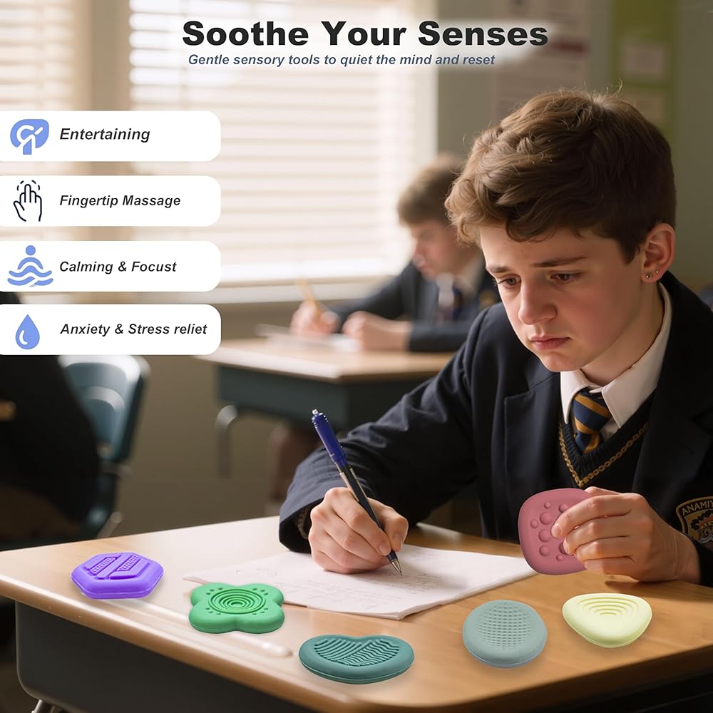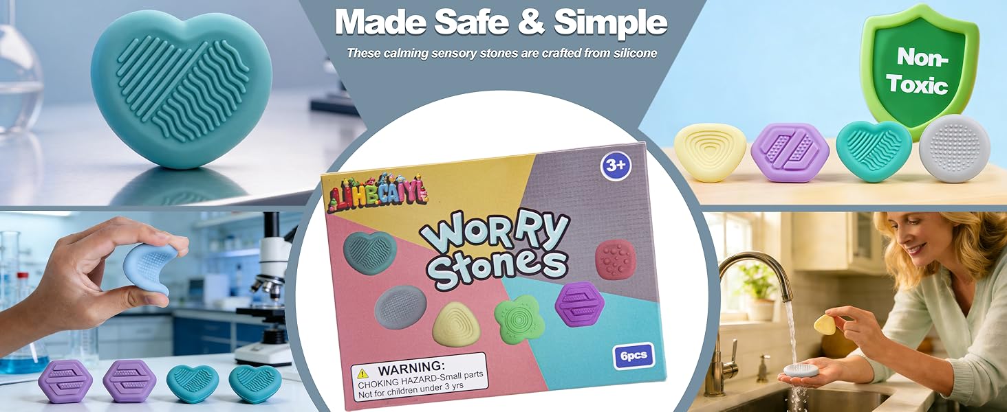 من وقت اللعب إلى وقت التركيز: تعمل أحجار القلق الحسية هذه كألعاب تململ جذابة للأطفال، وأدوات داعمة للأطفال المصابين بالتوحد، وألعاب تململ منفصلة للبالغين. رائعة كهدايا عيد الميلاد، أو زوايا الفصل الدراسي، أو تخفيف القلق المكتبي، فهي توفر طريقة بسيطة لمساعدة الجميع على الشعور بالهدوء والتركيز.