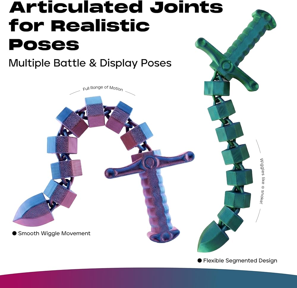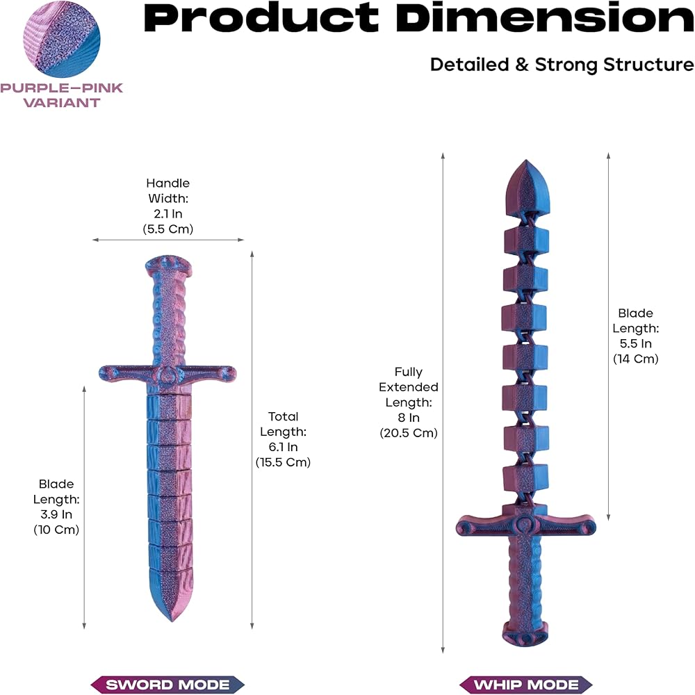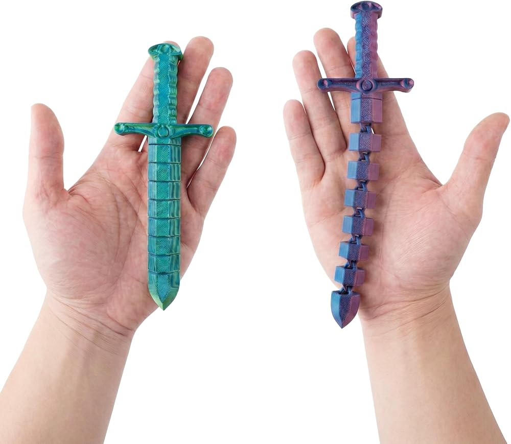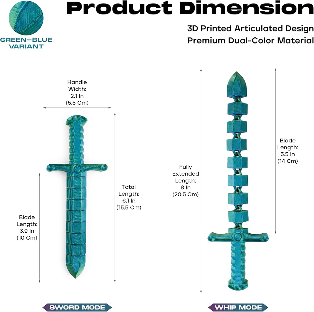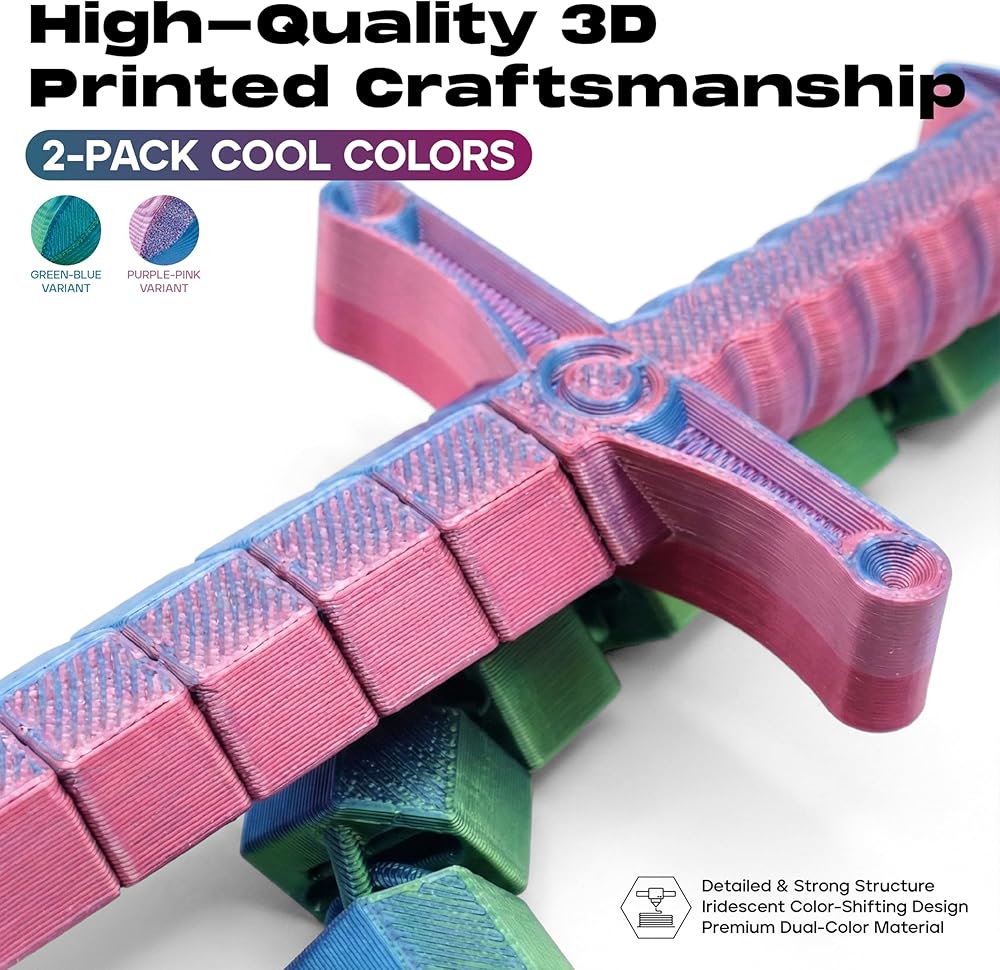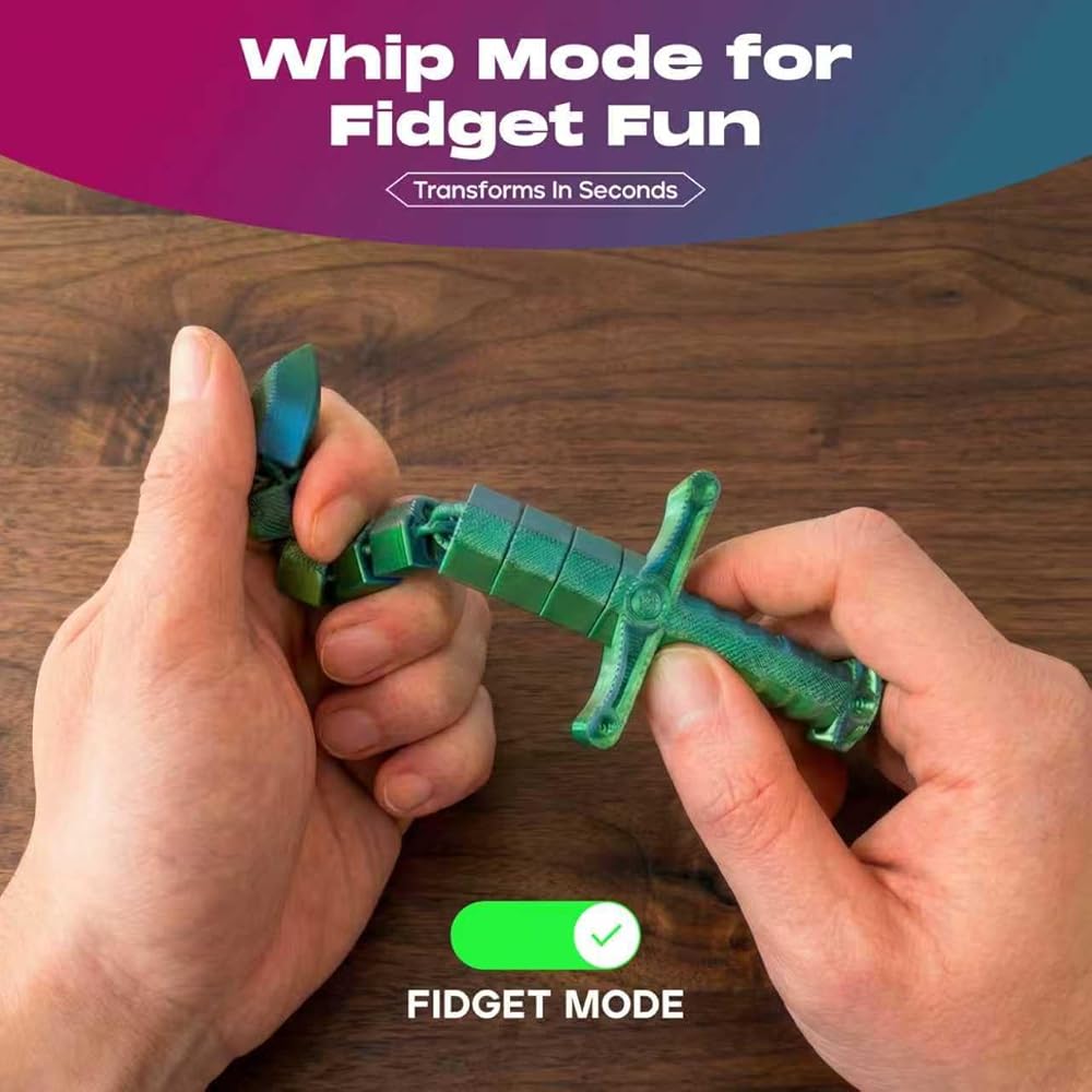 لعبة تململ سوط سيف صغيرة قابلة للتحويل مطبوعة ثلاثية الأبعاد من ديميلي (عبوة من قطعتين) - لعبة مكتب لتخفيف التوتر الحسي للبالغين والمراهقين، تململ مفصل مفصلي مع تصميم ثنائي الوضع (أخضر-أزرق وأرجواني-وردي)