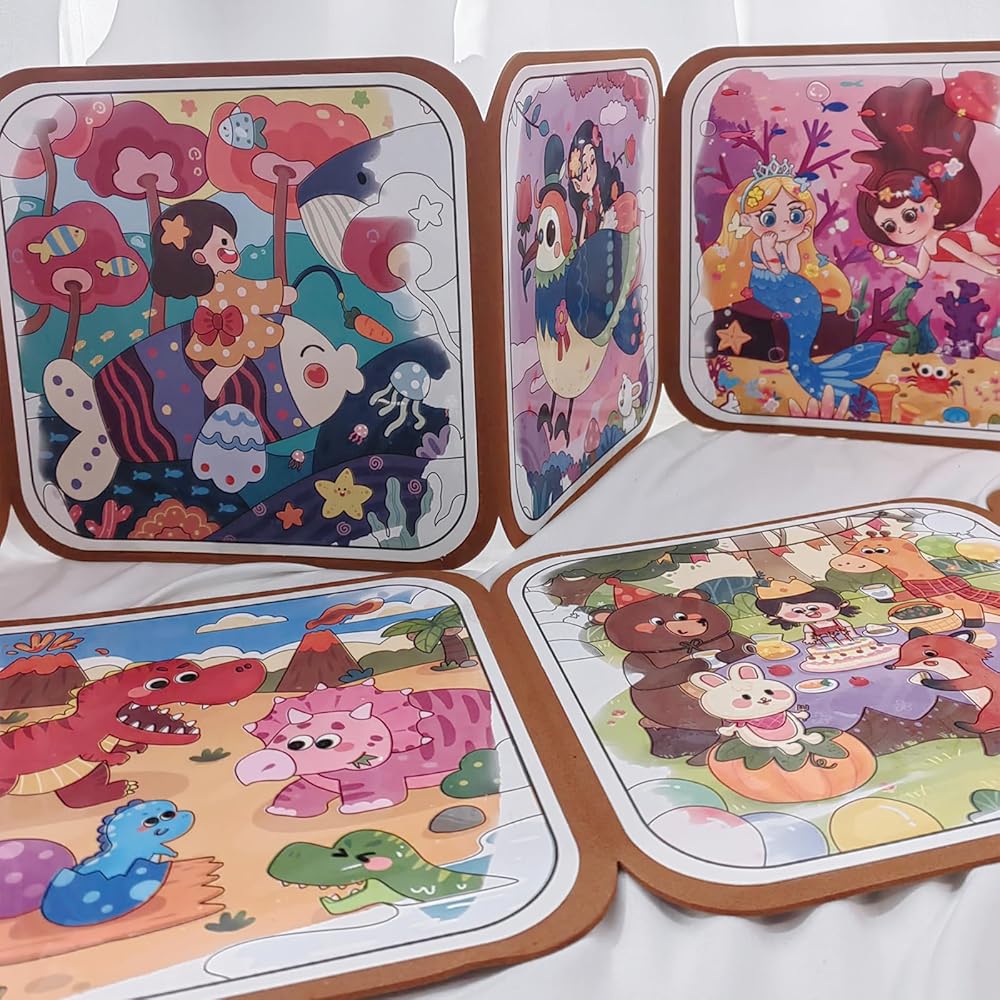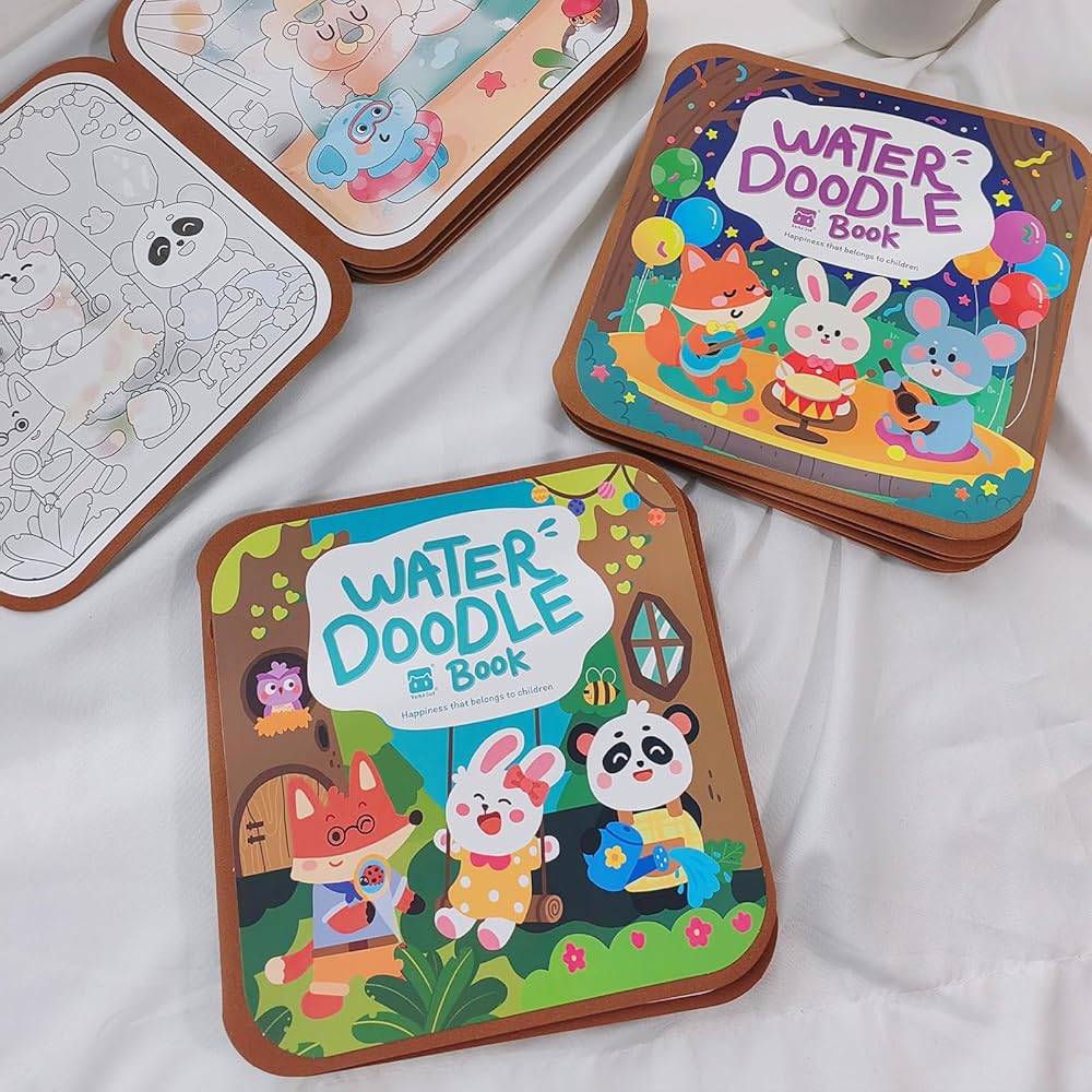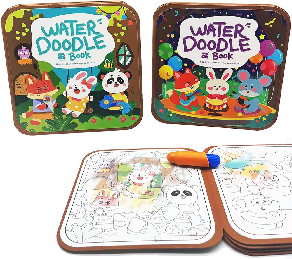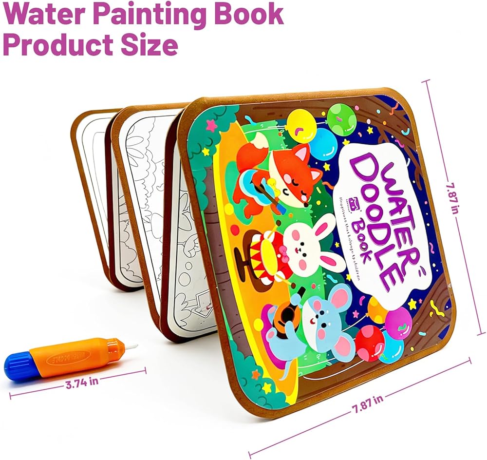 【No-Mess Water Painting Book】This 2-pack reusable water painting book set includes two magical watercolor books (Fairy Tale, Animal themes) plus two easy-grip water painting pens. Simply add water to reveal bright colors—no paint, no stains, and no cleanup required. Perfect for ages 3 and up.