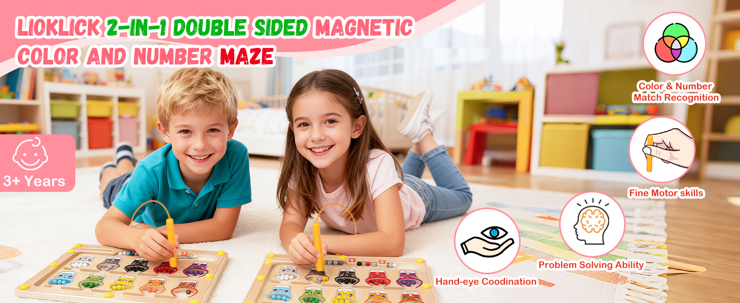 ✨【لعبة تعليمية مزدوجة الجوانب】: ألعاب ليوكليك مونتيسوري الخشبية العريضة هي تصميم علمي 2 في 1. الجانب الأمامي عبارة عن متاهة مغناطيسية للأرقام والألوان تدمج الأرقام والأشكال، مما يساعد الأطفال على إتقان التعرف على الأرقام والعد ومطابقة الألوان. يعمل الجانب العكسي بمثابة لوحة رسم إبداعية، مما يسمح للأطفال بالتعبير عن خيالهم بحرية. هذا التصميم متعدد الوظائف يحافظ على تركيز الأطفال الذين تتراوح أعمارهم بين 3 و5 سنوات أثناء اللعب.
