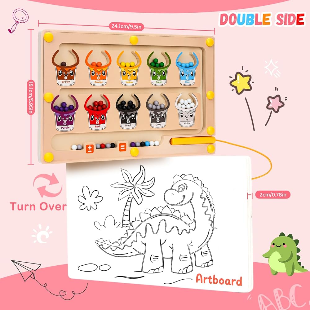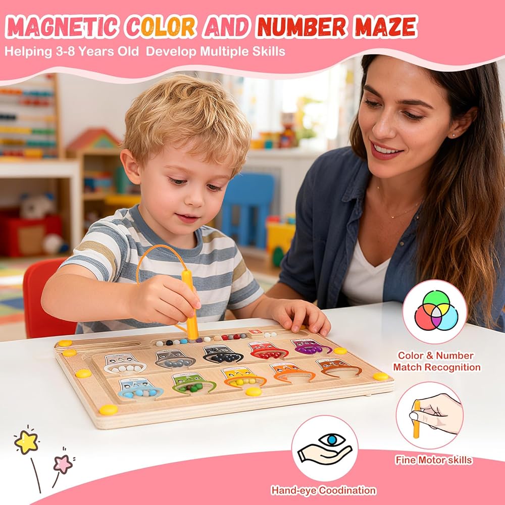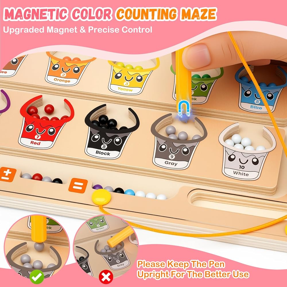 2 في 1 متاهة مغناطيسية للألوان والأرقام، ألعاب مونتيسوري مع لوحة رسم لعمر 3 4 5 سنوات، ألغاز كرات مغناطيسية خشبية، ألعاب تعليمية للأطفال الصغار الأولاد والبنات وأعياد الميلاد