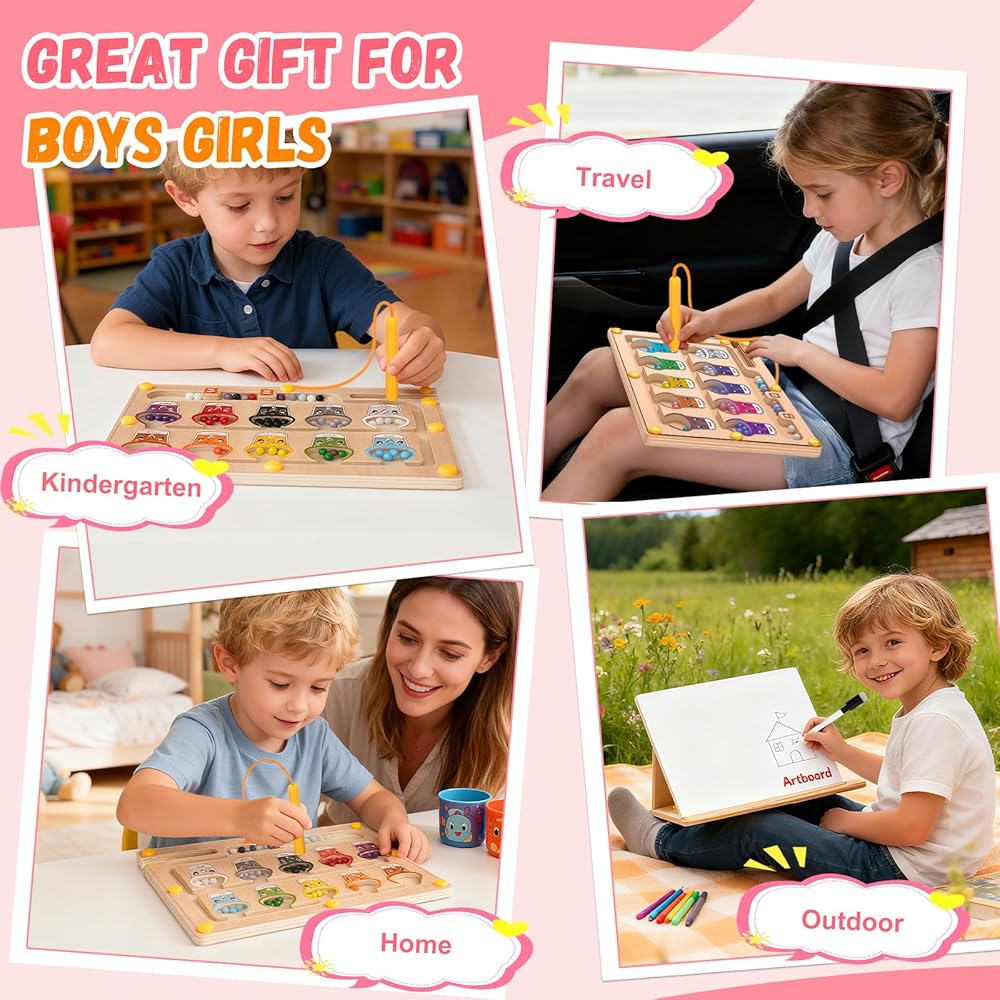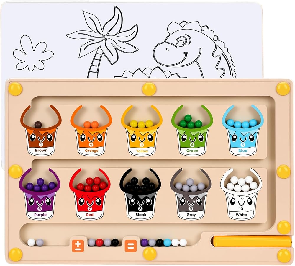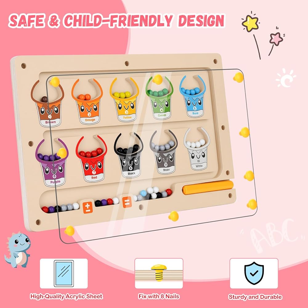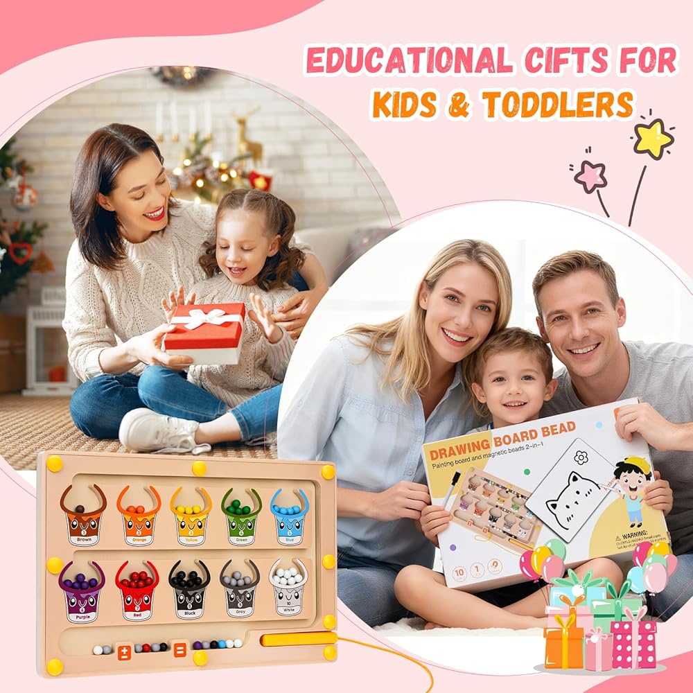2 في 1 متاهة مغناطيسية للألوان والأرقام، ألعاب مونتيسوري مع لوحة رسم لعمر 3 4 5 سنوات، ألغاز كرات مغناطيسية خشبية، ألعاب تعليمية للأطفال الصغار الأولاد والبنات وأعياد الميلاد