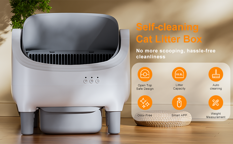 الإدارة الذكية التي يتم التحكم فيها عن طريق التطبيق (واي فاي 2.4 جيجا هرتز فقط) جهاز التحكم عن بعد: بدء/إيقاف التنظيف، أو ضبط وقت التأخير، أو التحقق من مستوى القمامة - كل ذلك من هاتفك الذكي. مثالي للآباء الحيوانات الأليفة المشغولين أو أثناء السفر! تنبيهات في الوقت الفعلي: احصل على إشعارات على هاتفك عندما يكون درج النفايات ممتلئًا، أو عندما تكون القمامة منخفضة، أو عند حدوث خطأ ميكانيكي. لا تفوت مهمة الصيانة مرة أخرى.