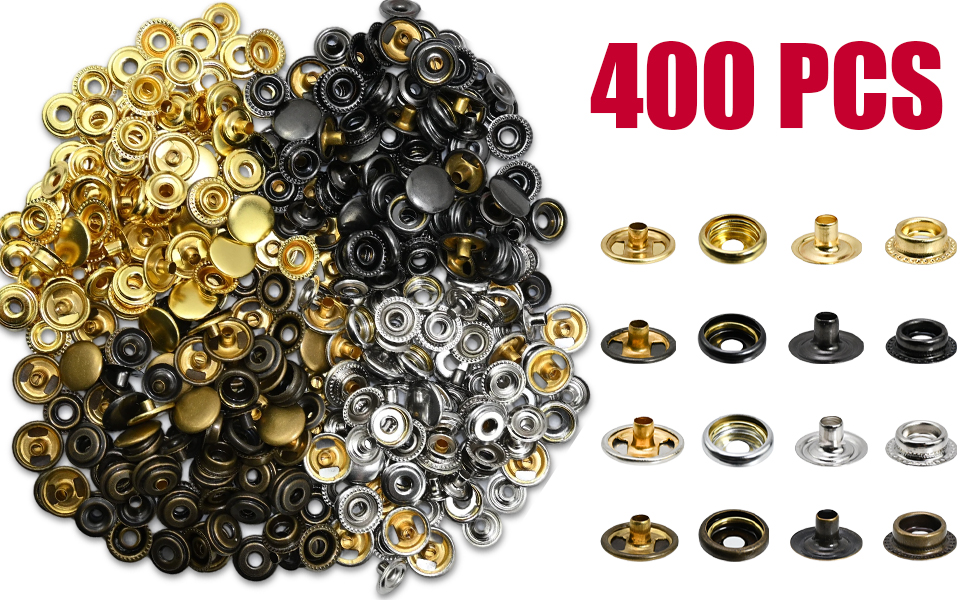 • 👍🏼【تلبية الاحتياجات المختلفة】تتضمن أدوات التثبيت هذه للنسيج 4 ألوان: فضي، وذهبي، ونحاسي، وأسود، مع 25 مجموعة من كل لون، بإجمالي 100 مجموعة. تعتبر أدوات التثبيت المفاجئة هذه مع أداة الإعداد مناسبة لمختلف المشروعات التي تصنعها بنفسك مثل الملابس الجلدية أو الدنيم والحقائب وغطاء القارب والأحذية والقبعات والأقمشة وما إلى ذلك، دون الحاجة إلى شراء لون منفصل.