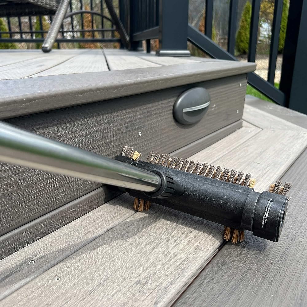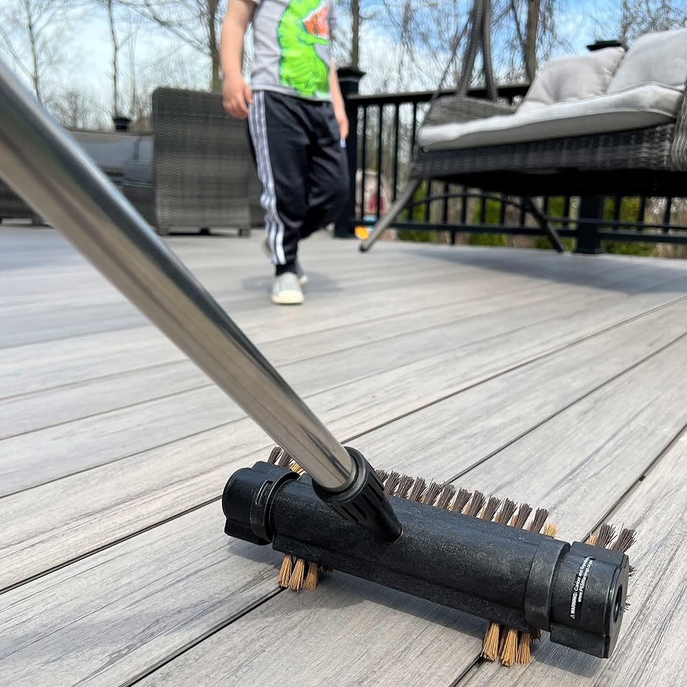 فرشاة تنظيف سطح السفينة بمقبض تلسكوبي 53 بوصة 2 في 1، فرشاة تنظيف الفناء ذات شعيرات خشنة لتنظيف سطح الفناء
