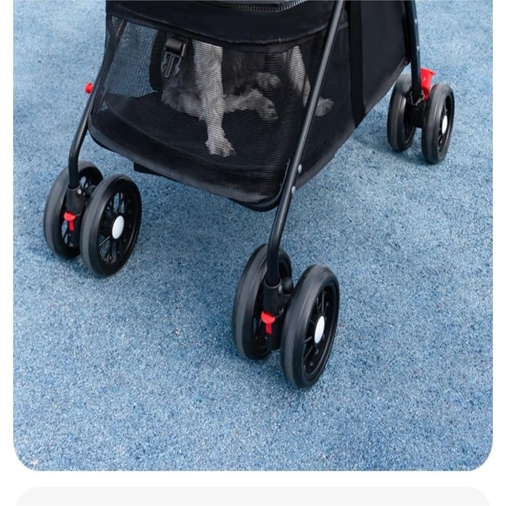 This pet stroller is reinforced with a sturdy stable stand for enhanced durability and stability, easy to clean, and low long-term maintenance costs.