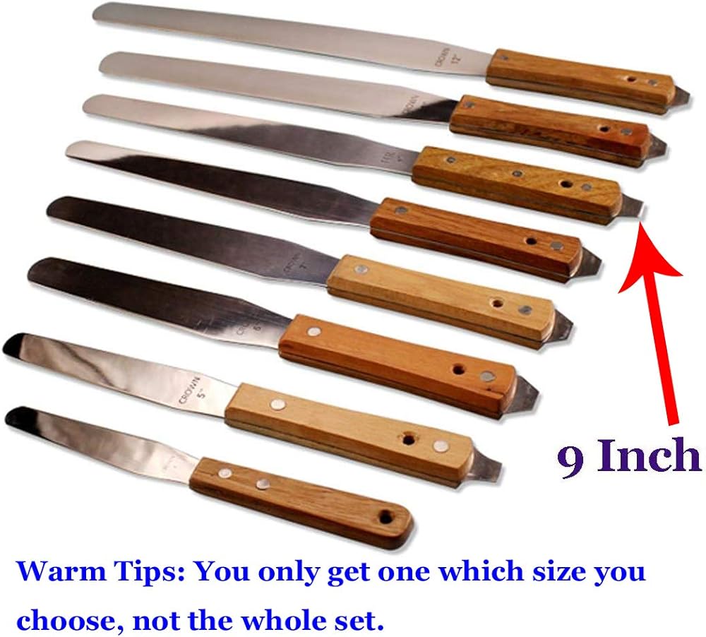 ملعقة حبر طباعة الشاشة مقاس 9 بوصة - سكين من الفولاذ المقاوم للصدأ بمقبض خشبي، مرن - 4 بوصة / 5 بوصة / 6 بوصة / 7 بوصة / 8 بوصة / 9 بوصة / 10 بوصة / 12 بوصة (9 بوصات)