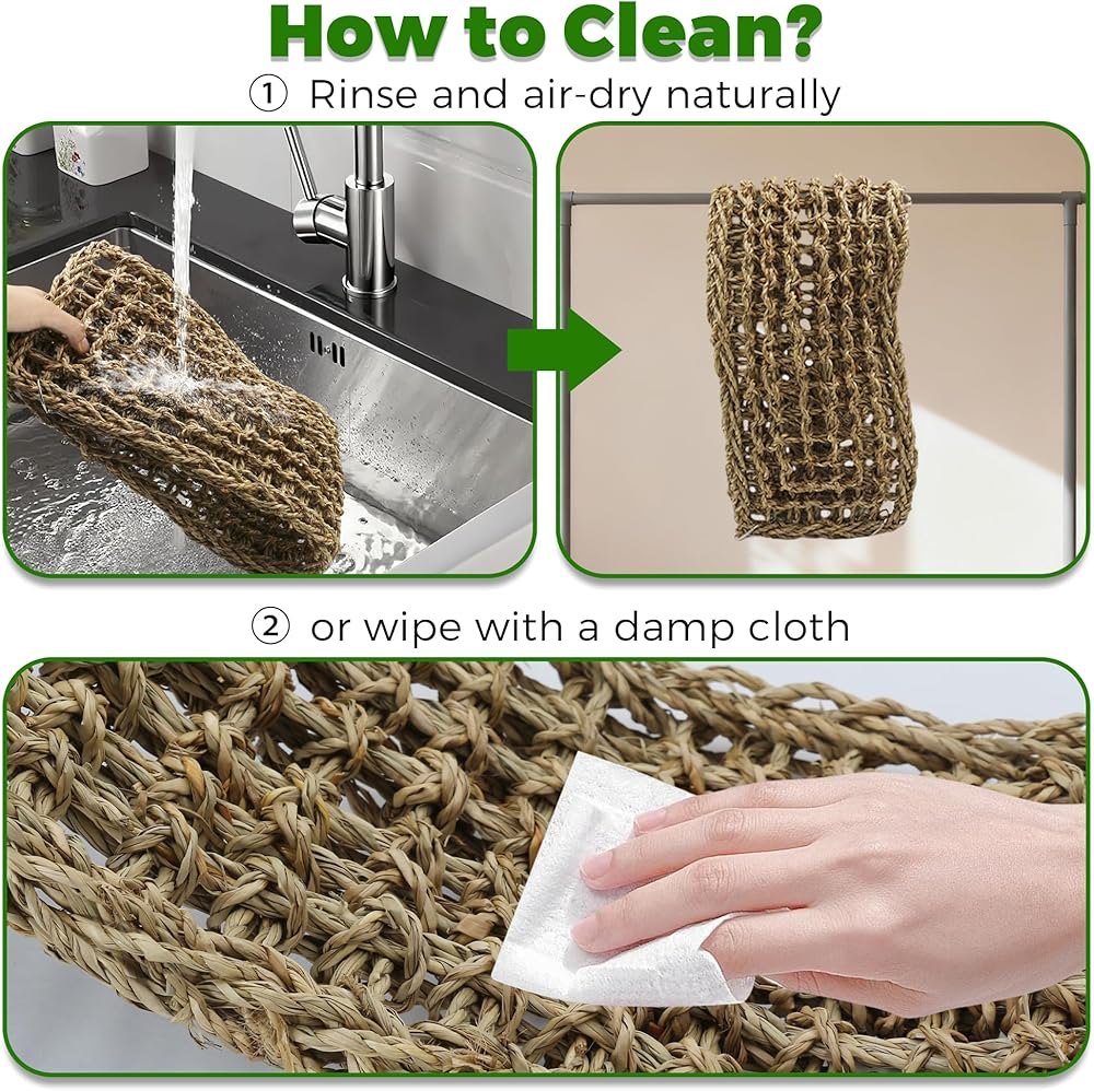 أعشاب بحرية آمنة وناعمة: منسوجة من الأعشاب البحرية الطبيعية برائحة عشبية خفيفة، منصة تسلق الفئران هذه قابلة للتنفس وناعمة على الكفوف وقوية بما يكفي للعب الفئران النشط، وهي آمنة للمضغ ومصممة للاستخدام طويل الأمد.