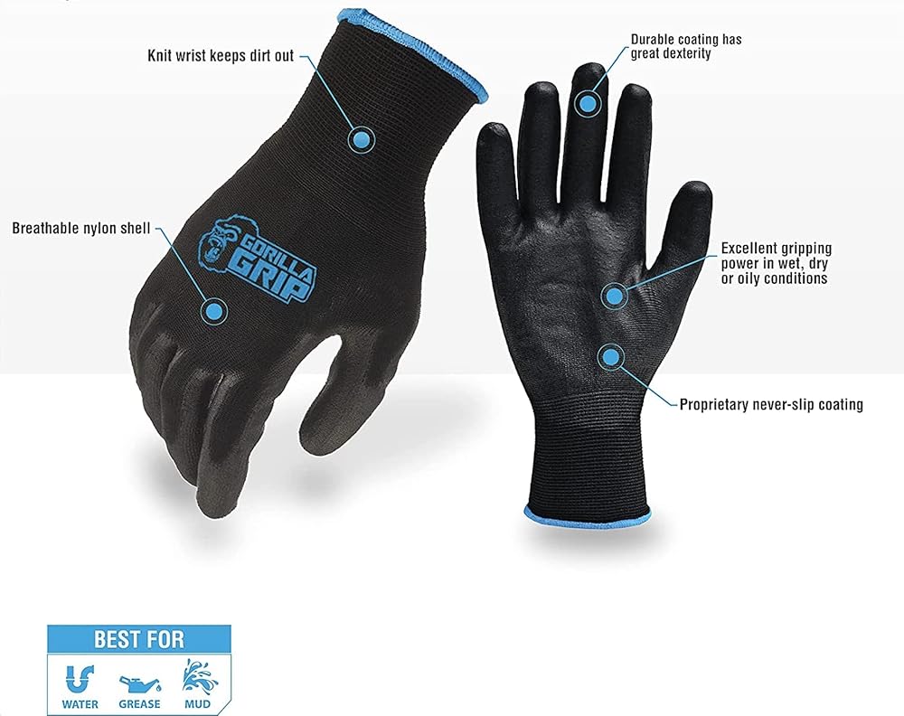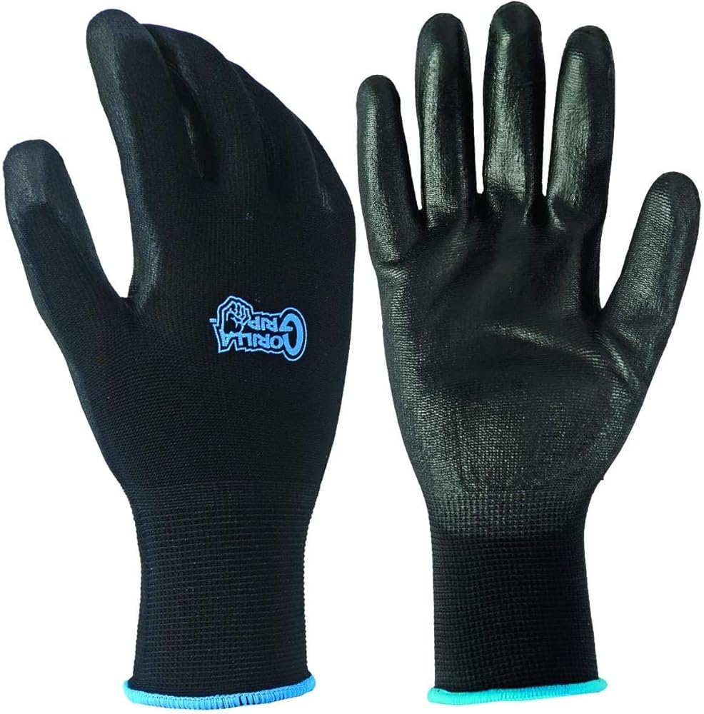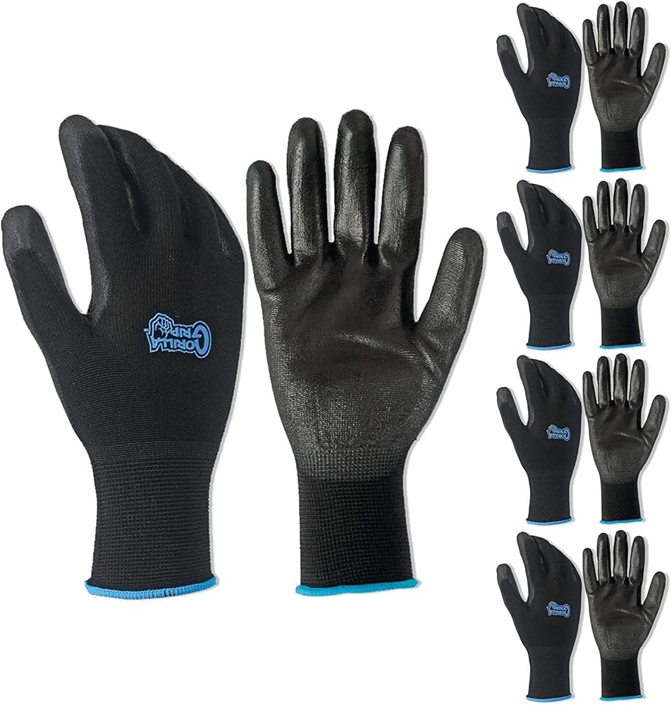 قفازات العمل المقاومة للانزلاق لجميع الأغراض من غوريلا جريب | الحجم: كبير | 5 حزمة من القفازات