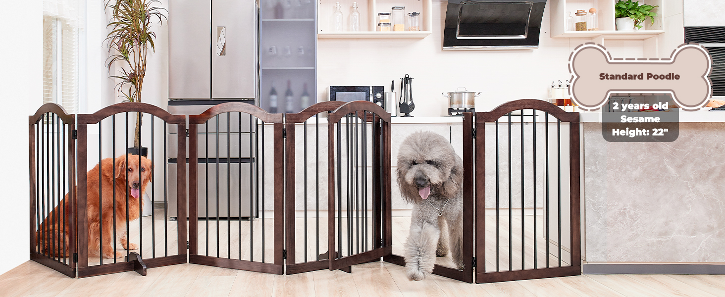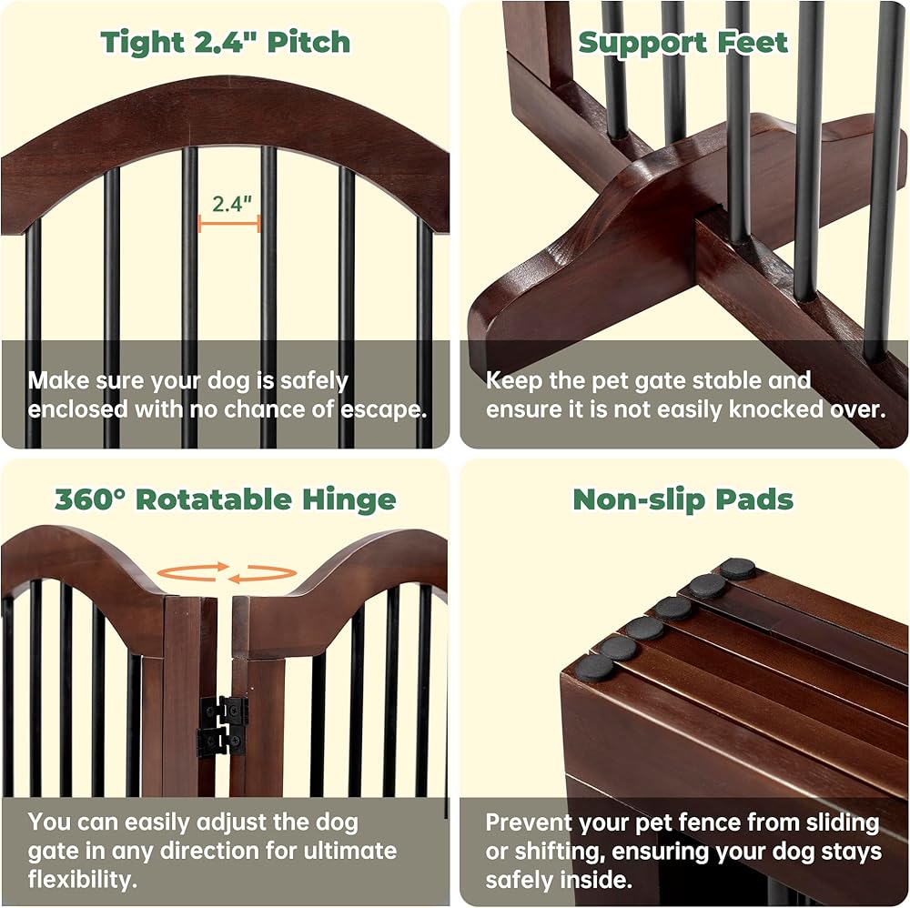 【آمنة ومستقرة للحيوانات الأليفة】تم تصميم بوابة الكلاب الكبيرة الخاصة بنا في الداخل مع وضع السلامة في الاعتبار. خشب السنط مصقول ومطلي بطبقة آمنة مقاومة للماء، ويتم رش الأنابيب الحديدية المكونة من قطعة واحدة بطبقة مسحوق عالية الجودة، مما يؤدي إلى سطح أملس وخالي من الاختباء لن يخدش جلد حيوانك الأليف. يشتمل السياج الطويل جدًا للكلاب بالداخل على قدمين داعمتين لتوفير ثبات لا يهزم، مما يضمن وقوفه بشكل أكثر ثباتًا على الأرض.