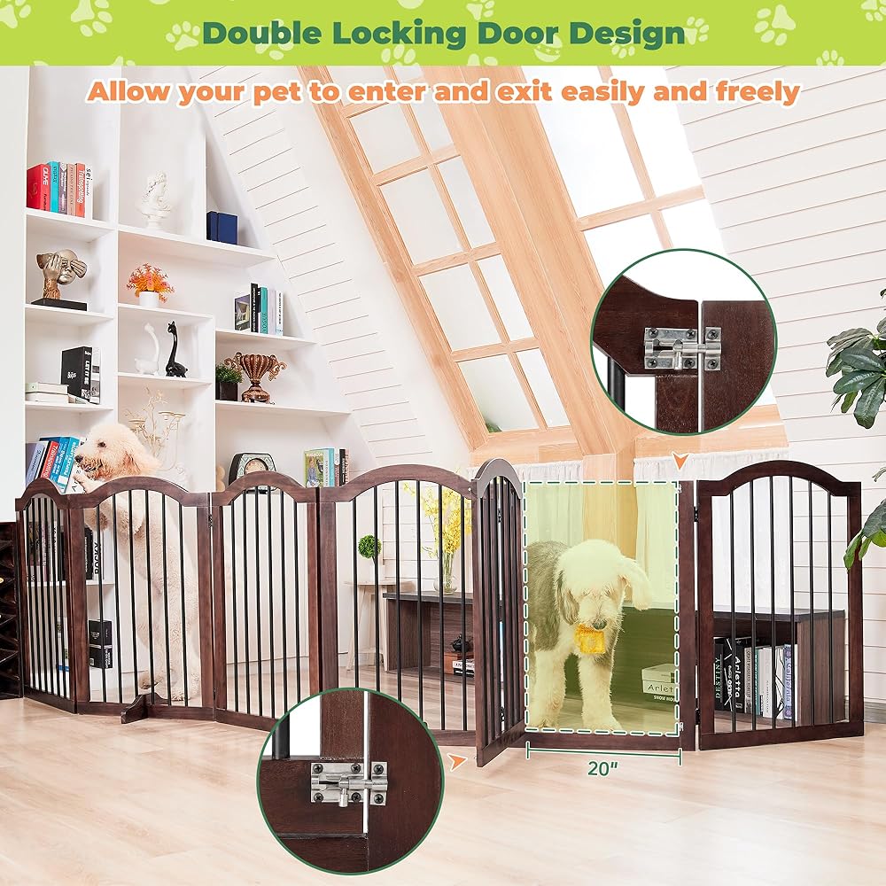 【باب مزدوج مريح قابل للقفل】بوابة الكلب الداخلية مع باب قابل للقفل تجعل من السهل على حيوانك الأليف الدخول والخروج دون الحاجة إلى القفز فوق السياج. قم بتحويل منزلك إلى ملاذ آمن وأنيق لأصدقائك ذوي الفراء من خلال روضة الحيوانات الأليفة الطويلة جدًا القابلة للتوسيع من PrimeZone، قل وداعًا للفوضى التي تسببها الحيوانات الأليفة.