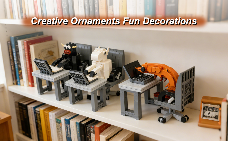 - تصميم فريد من نوعه لرجل الروبيان: رجل جمبري مضحك مع مكتب وكرسي، مجموعة مكعبات بناء صغيرة مبتكرة للعرض أو اللعب أو ديكور المكتب