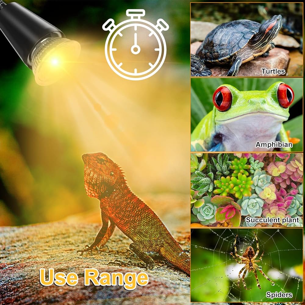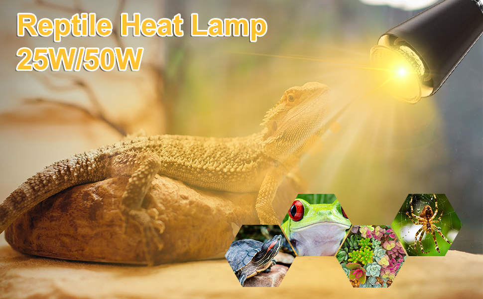 【مناسبة لمعظم الزواحف】توجد لمبة UVA وUVB قابلة للاستبدال بقدرة 25 وات و50 وات، والتي يمكن أن توفر الحرارة للزواحف، وتحسن شهيتها، وتساعد على امتصاص الكالسيوم. يمكن للمصابيح الحرارية تسخين الهواء والماء، مما يمكن أن يخلق بيئة مناسبة للزواحف الخاصة بك. إنه مثالي للسلحفاة والسحلية وتنين اللحية والثعبان والفرخ وما إلى ذلك.