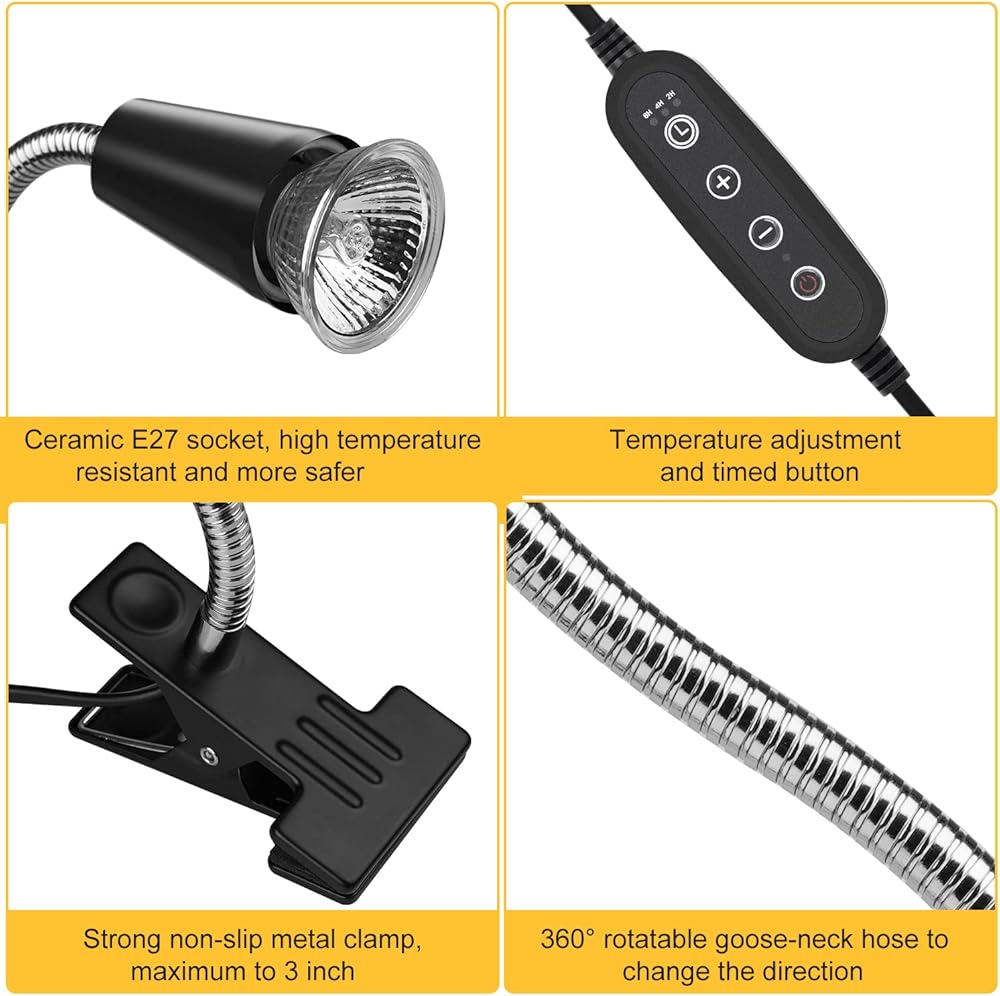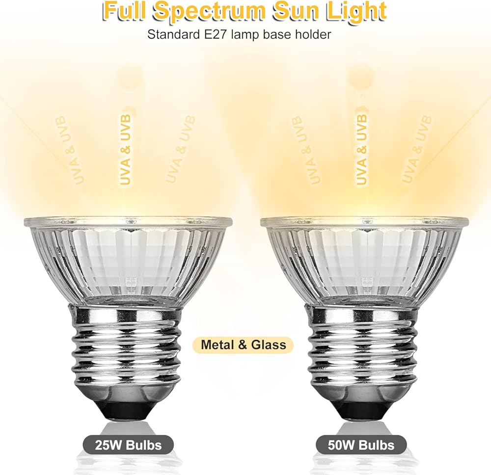 【جودة فائقة】حامل مصباح الزواحف والمشبك مصنوعان من المعدن، وهو ذو ملمس ممتاز. المصابيح القابلة للاستبدال مصنوعة من زجاج عالي الجودة، والذي يمكنه تقوية طيف الأشعة فوق البنفسجية.