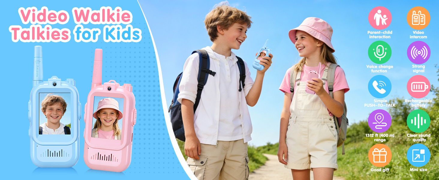 على عكس أجهزة الاتصال اللاسلكي العادية، تم تجهيز أجهزة اتصال الفيديو اللاسلكية هذه بكاميرات وشاشات عالية الوضوح، مما يتيح إجراء مكالمات فيديو وجهًا لوجه في الوقت الفعلي. إنها مناسبة بشكل خاص للعب في الهواء الطلق أو التخييم أو رحلات الحديقة. علاوة على ذلك، يعد جهاز الاتصال اللاسلكي هذا هدية مثالية لعيد الميلاد أو هدية عيد ميلاد أو هدية عطلة للأطفال.