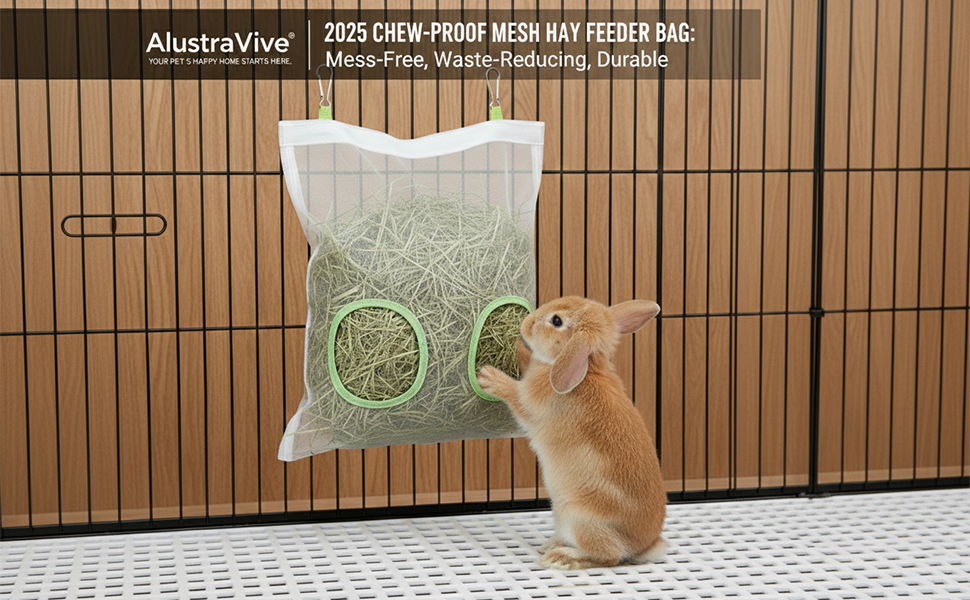 • هيكل شبكي متين مقاوم للمضغ: مصنوع من نسيج شبكي قوي يدوم طويلاً لمقاومة المضغ والشد المستمر من الأرانب والخنازير الغينية. تم تصميم هذا الهيكل من أجل المتانة وطول العمر، مما يوفر بديلاً فائقًا للرفوف البلاستيكية الواهية مع الحفاظ على الوصول المستمر إلى القش. ملحوظة: تتمتع الأرانب بغرائز مضغ طبيعية قوية؛ لا توجد وحدة تغذية من المواد الناعمة مقاومة للمضغ تمامًا.