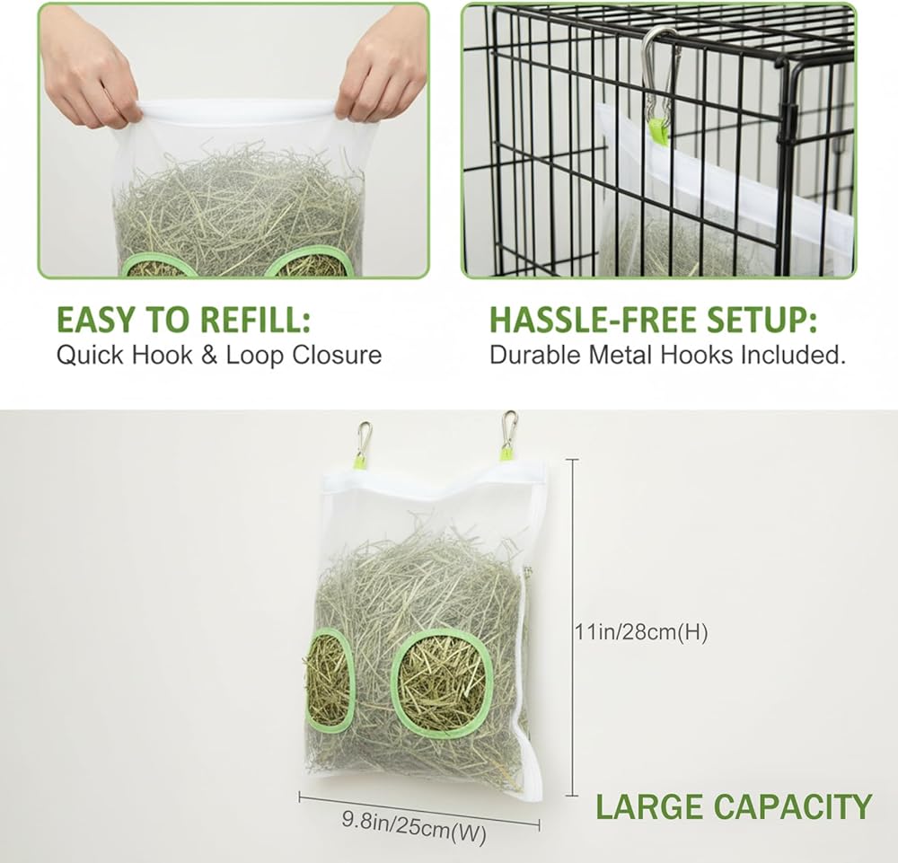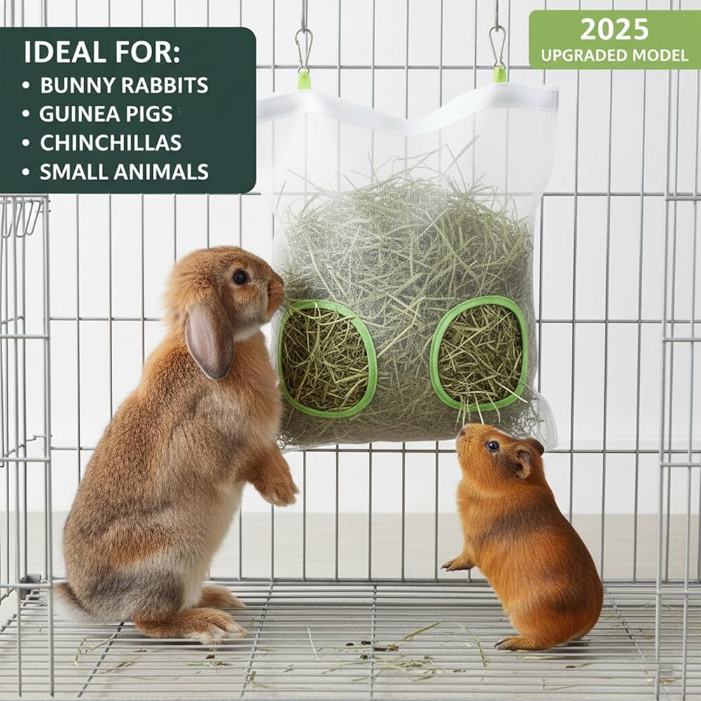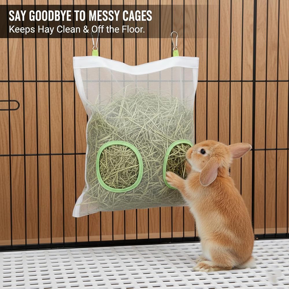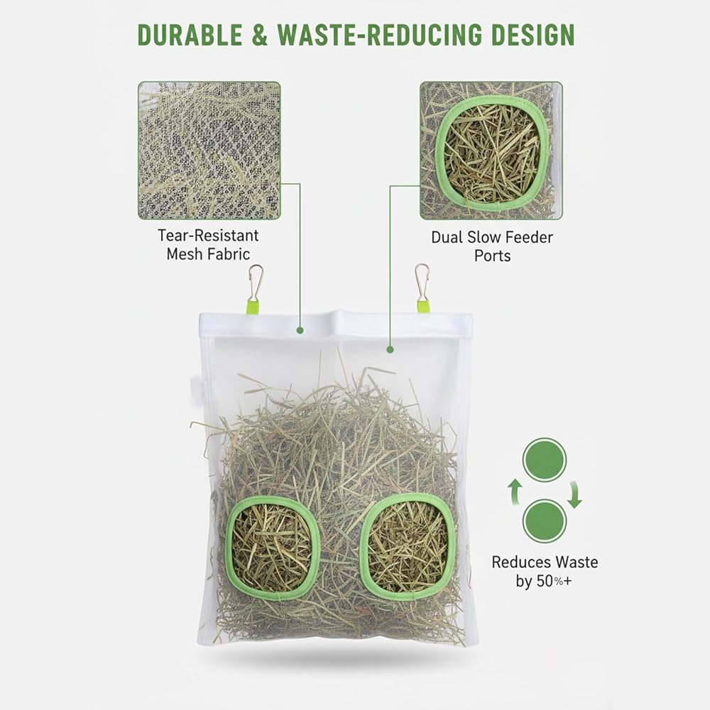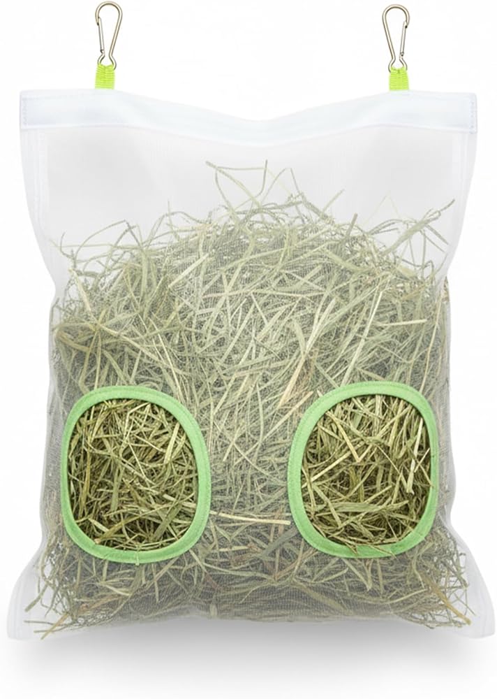 حقيبة تغذية قش الأرانب، موزع بطيء ثنائي الفتحات مقاوم للمضغ للأرنب وخنازير غينيا 9.8 × 11 بوصة، موديل جديد 2025