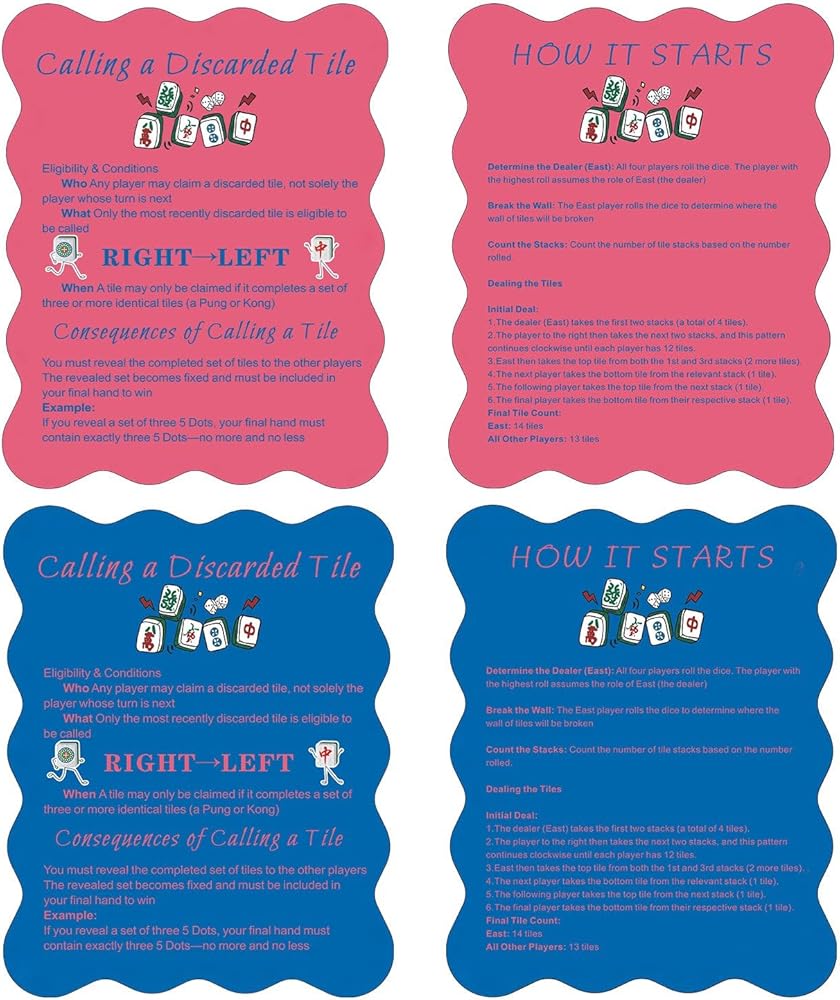 Universal Mahjong Compatibility: The mahjong rules are printed on the surface, allowing novice players to get started quickly. These mahjong shufflers also help to evenly and randomly distribute the mahjong tiles, making each round of the game fair, fun, and fast-paced, suitable for all players.