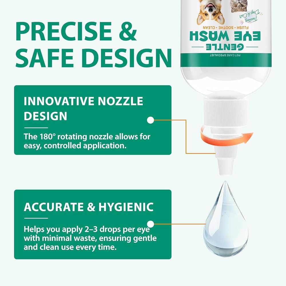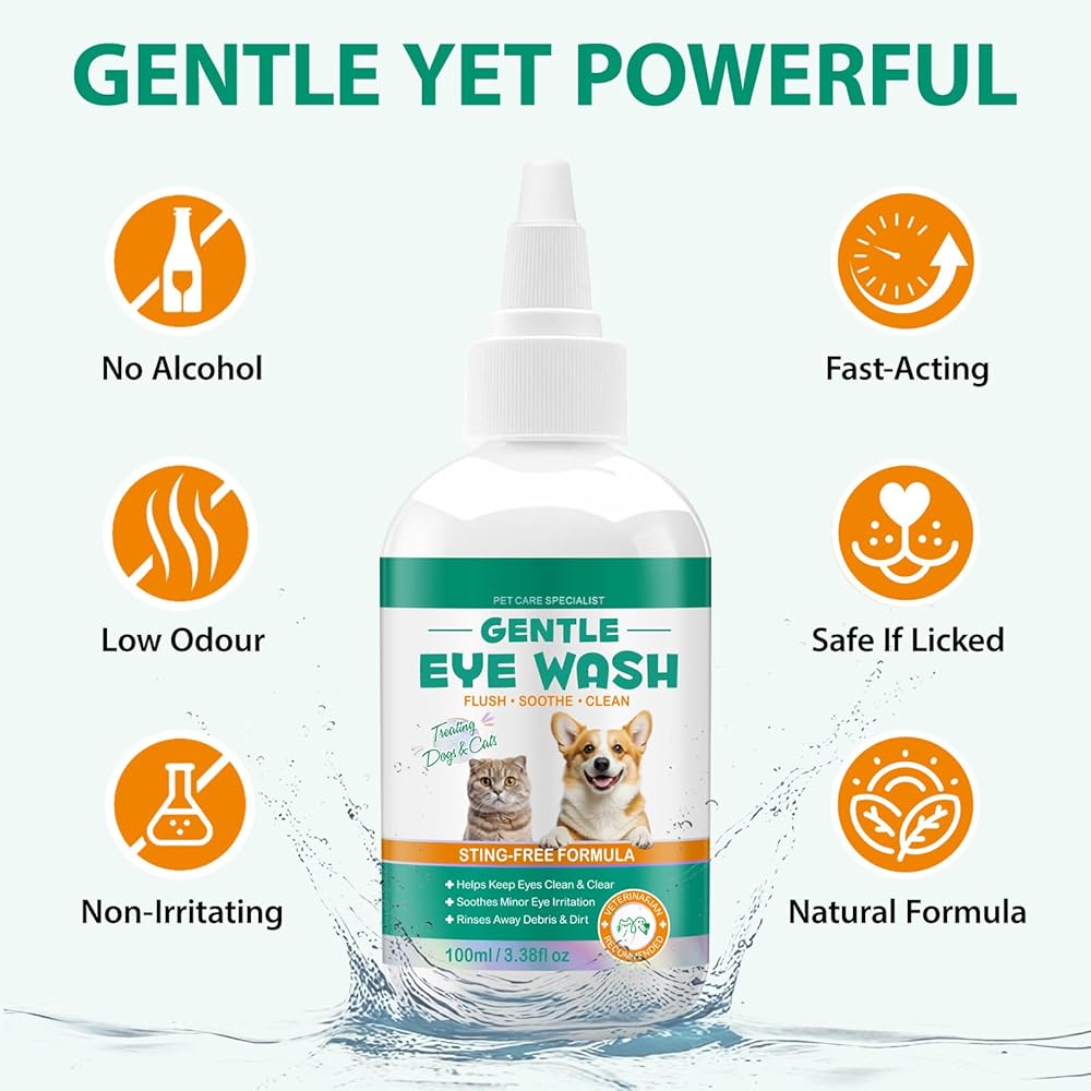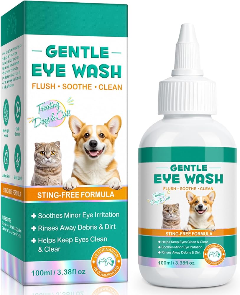 قطرات عين الحيوانات الأليفة للكلاب والقطط - قطرات عين القطط اللطيفة للحكة والعيون المائية - محلول آمن لغسل العين للكلاب والقطط - 3.38 أونصة