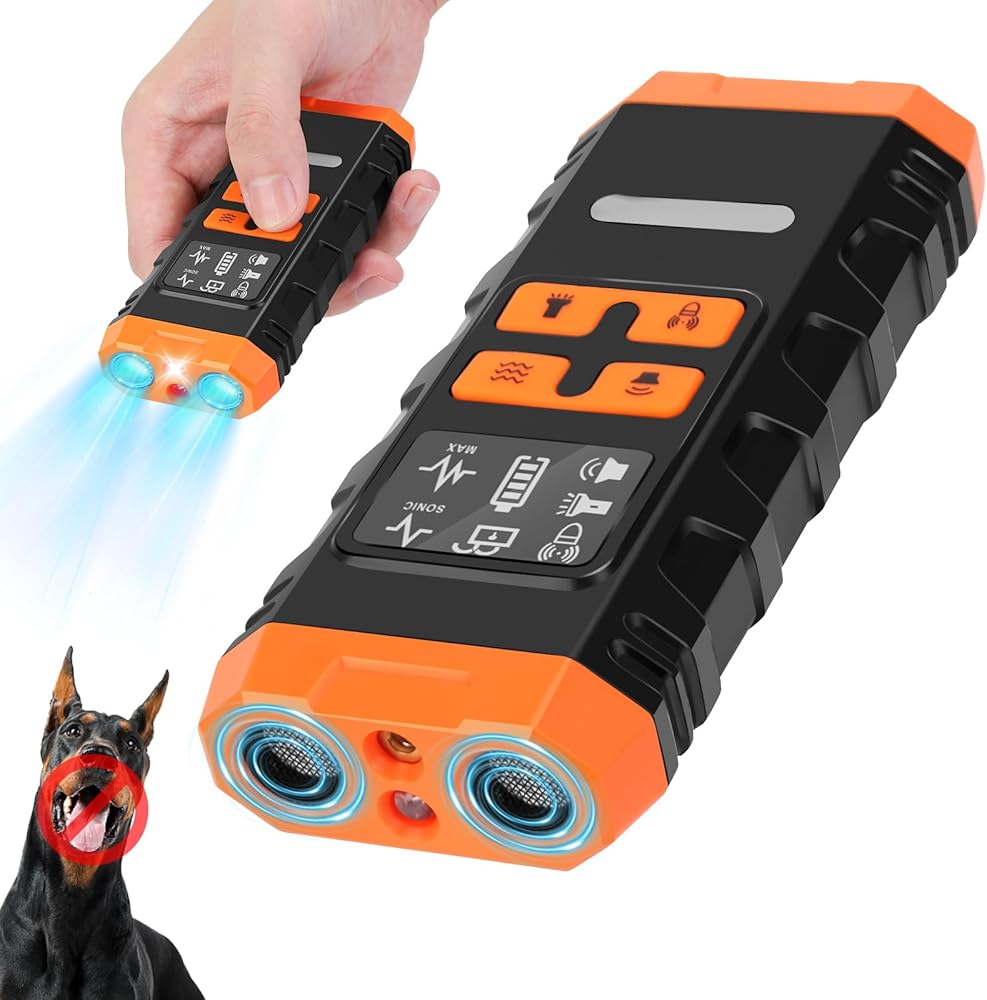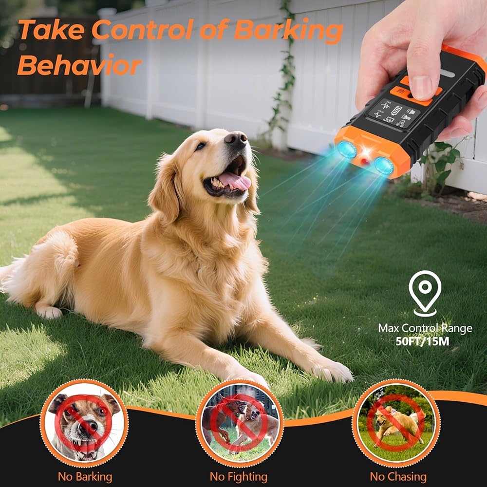 أجهزة منع نباح الكلاب من MultiOutools، جهاز مضاد للنباح بالموجات فوق الصوتية لتدريب الكلاب، تدريب الكلاب يوقف السلوك السيئ حتى 50 قدمًا، ضوء LED طويل المدى، مدرب الكلاب بالموجات فوق الصوتية للاستخدام الداخلي والخارجي
