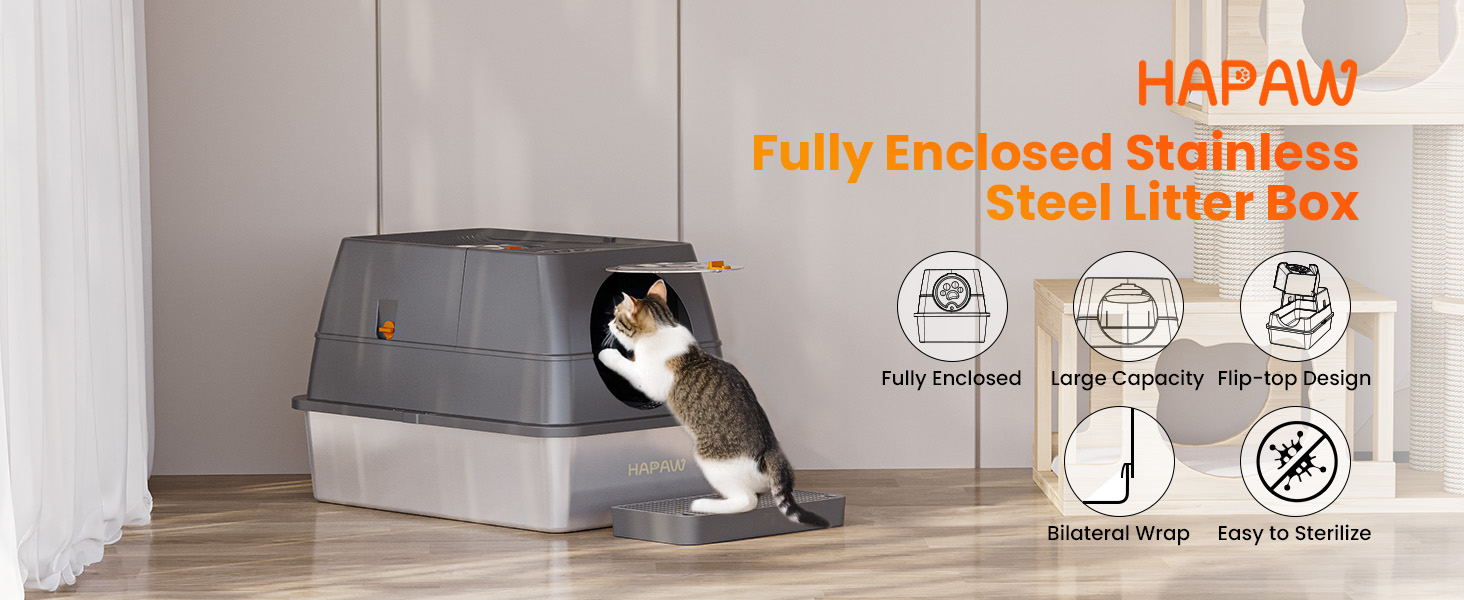 صندوق فضلات من الفولاذ المقاوم للصدأ مع غطاء، وعاء فضلات القطط الكبير جدًا قابل للطي بزاوية 135 درجة، صندوق فضلات معدني مغلق مع مغرفة فضلات ودواسة فلتر، خالٍ من الرائحة، مدخل مزدوج من الأمام والأعلى