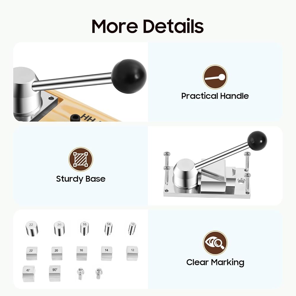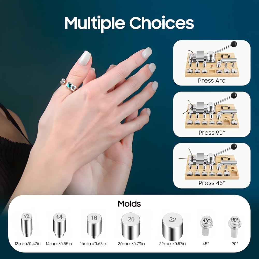 • 💍Multiple Sizes: This portable ring bender tool comes with 0.47in, 0.55in, 0.63in, 0.79in, and 0.87in molds, as well as 90° square posts, and 45° square posts, which can meet the needs of making different sizes of rings.