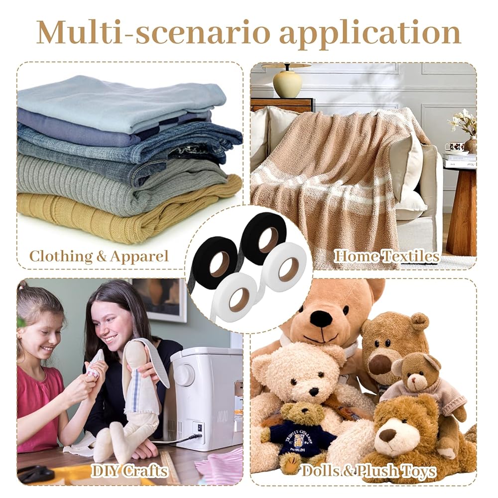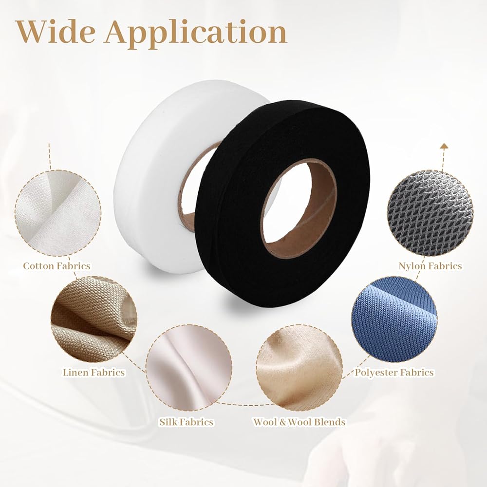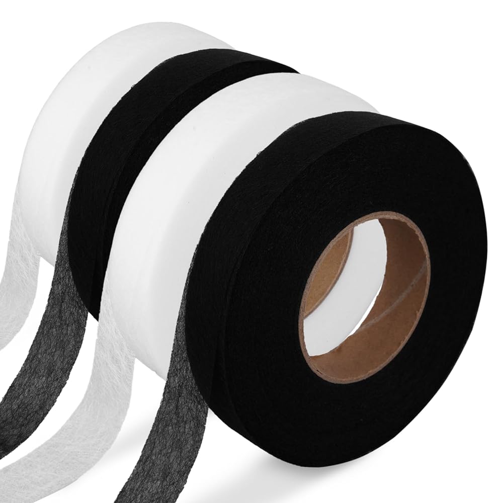 Set Content:This set includes 4 rolls of iron-on hemming tape (total 280 yards, black + white). It works well as practical hemming tape for pants and provides enough quantity for daily mending or crafting, while also serving as versatile fabric tape for hemming to meet different fabric fixing needs