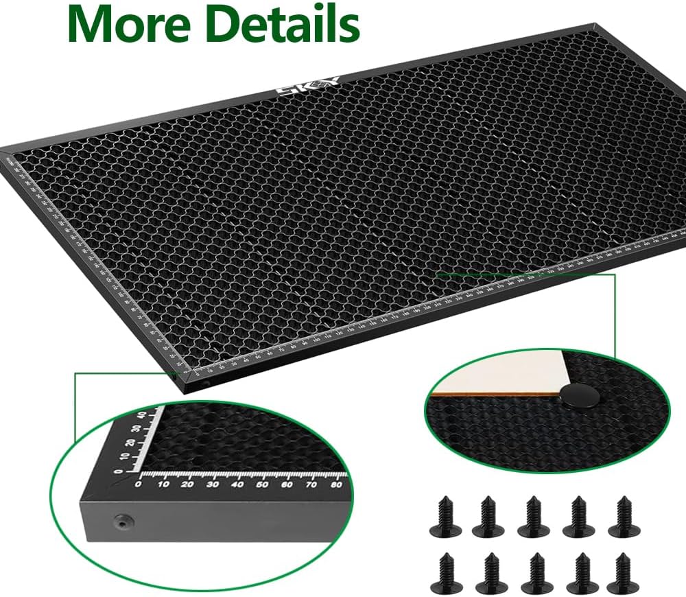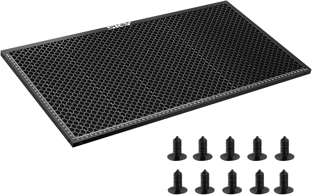 【Measuring Ruler& Fixing Pins】 Honeycomb laser bed X-axis and Y-axis contain precise scale lines to form a right-angle measuring ruler, which is convenient for you to measure the size of cutting objects quickly. come with 10 fixing pins in the packaging for easy fixation during engraving.