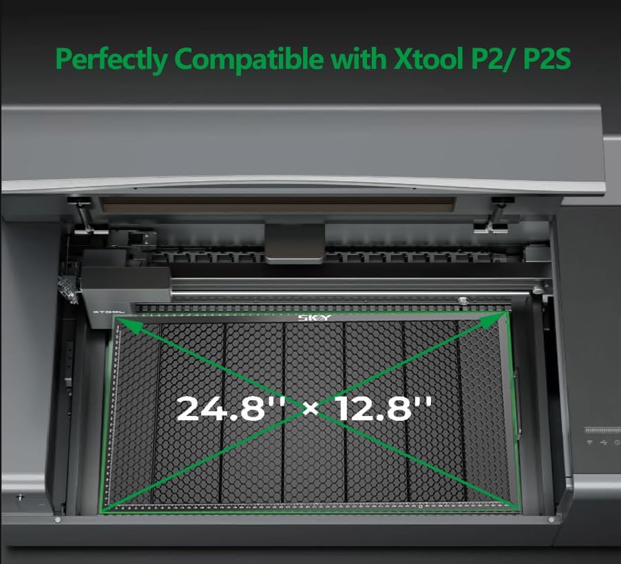 【Application】Design for Xtool P2 and P2S CO2 Laser Cutter, available inner honeycomb size 23.8x11.8 inches (605*300mm ), easy to install, no needed tools.
