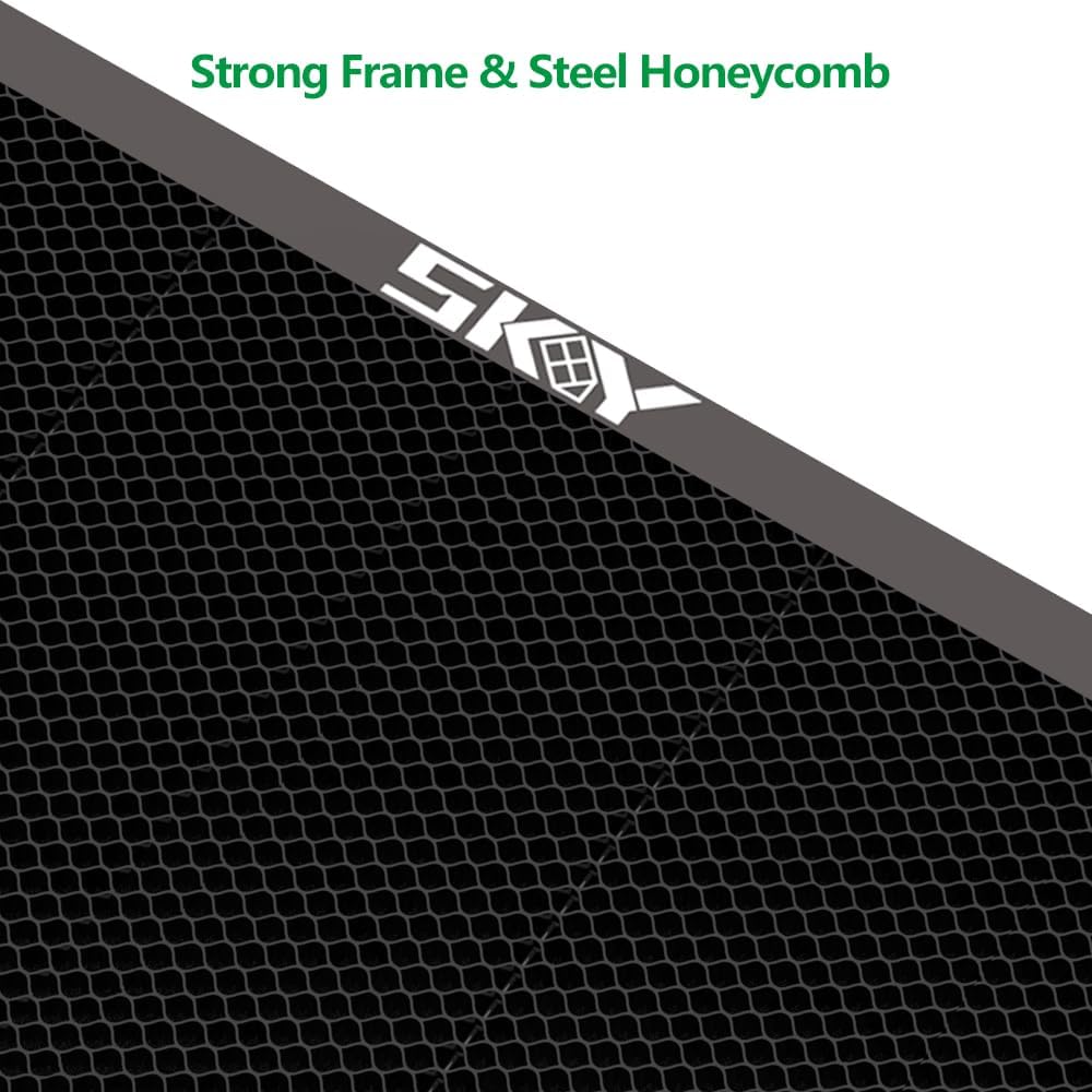【Upgrade honeycomb panel technology】The frame is made of high-quality steel, and the honeycomb area is coated with black oxide coating technology to enhance the overall strength of the honeycomb panel, with a load-bearing capacity of up to 5kg. Steel honeycomb panel is different from aluminum alloy and can be compatible with strong magnet to hold materials down during cutting or engraving.