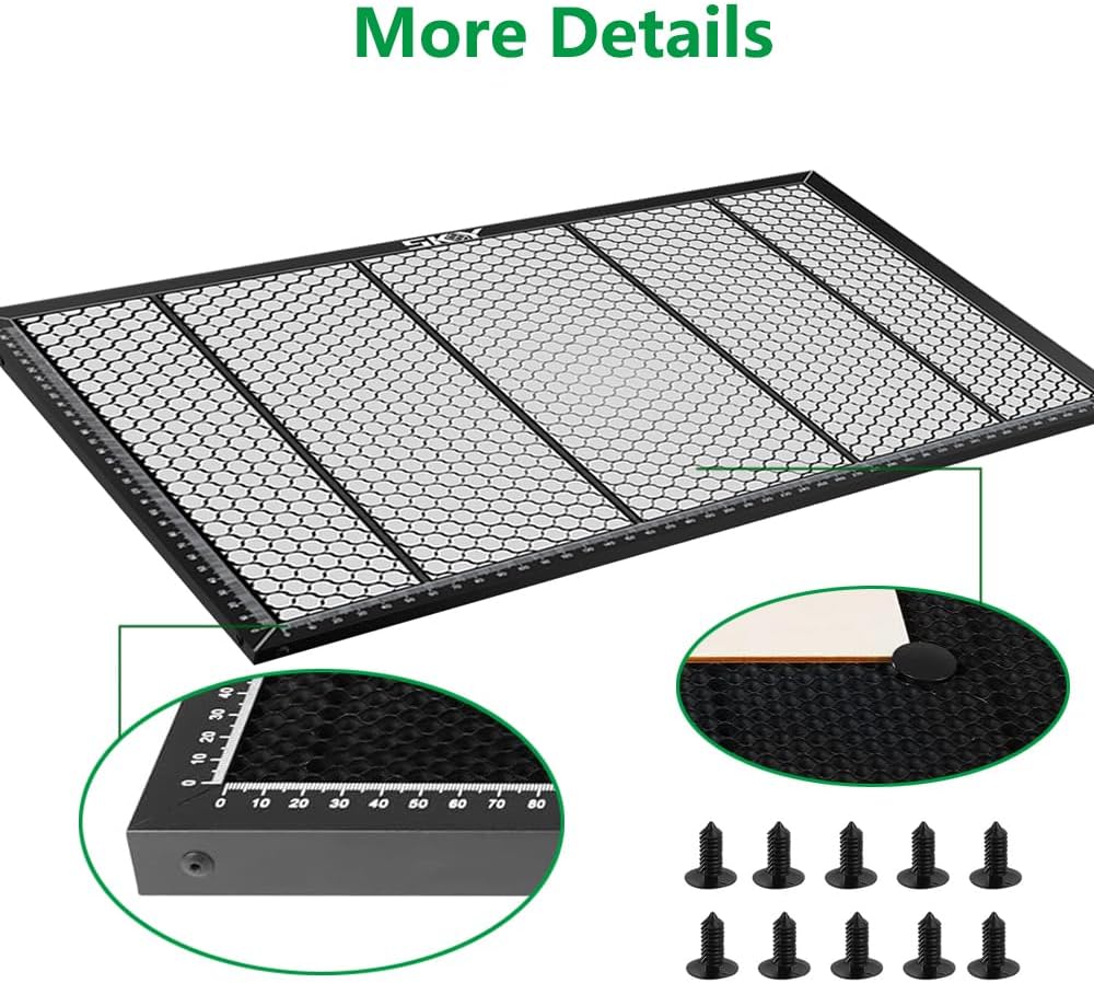 【Better Laser Engraving Experience】This honeycomb table is open structure honeycomb hole design, which can achieve the best airflow during cutting, less smoke, more effective smoke exhaust, and solve the problem of wood and other materials darkening or warping due to smoke.