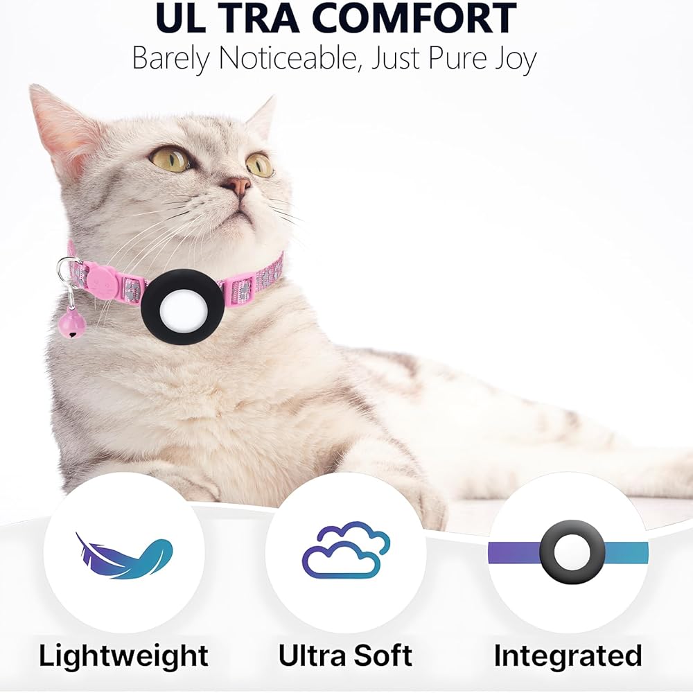 جهاز تعقب GPS للقطط، جهاز تعقب صغير للحيوانات الأليفة بنظام GPS، جهاز تعقب القطط المقاوم للماء IPX8، بدون رسوم شهرية، يعمل مع Apple Find My (iOS فقط)، أجهزة تعقب ذكية للحيوانات الأليفة-Pink-5