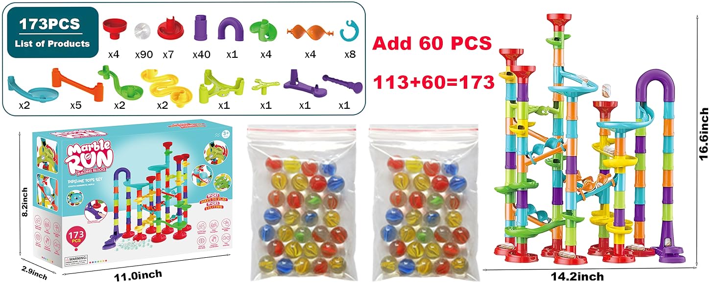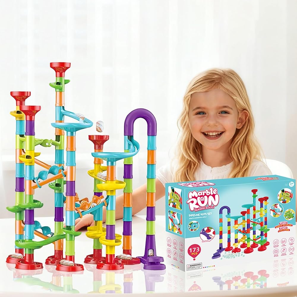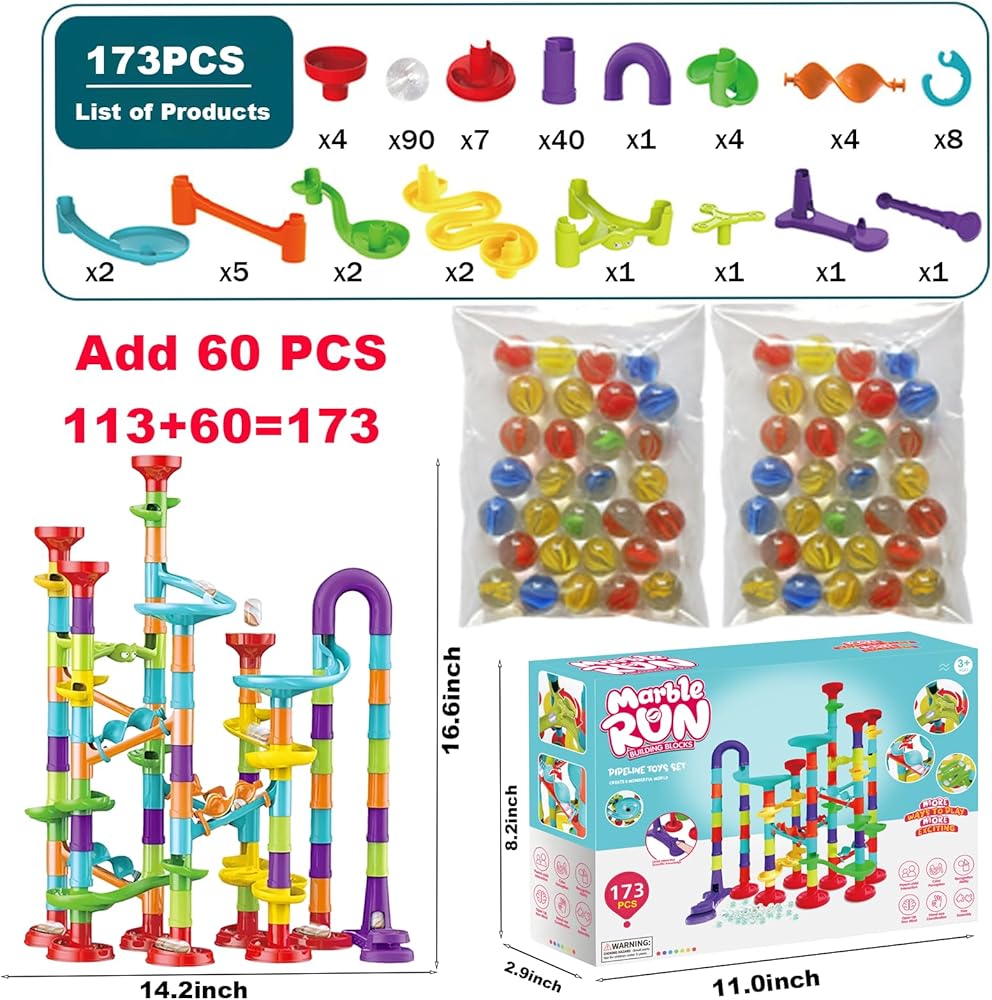 مجموعة تشغيل الرخام - 173 قطعة من ألعاب تعلم العلوم والتكنولوجيا والهندسة والرياضيات للأطفال من 4 إلى 8 مسارات، مسارات سباق للأطفال، برج رخامي، ألعاب مكعبات البناء (G47)