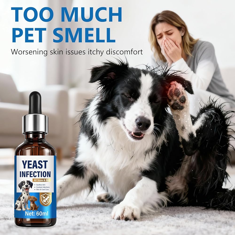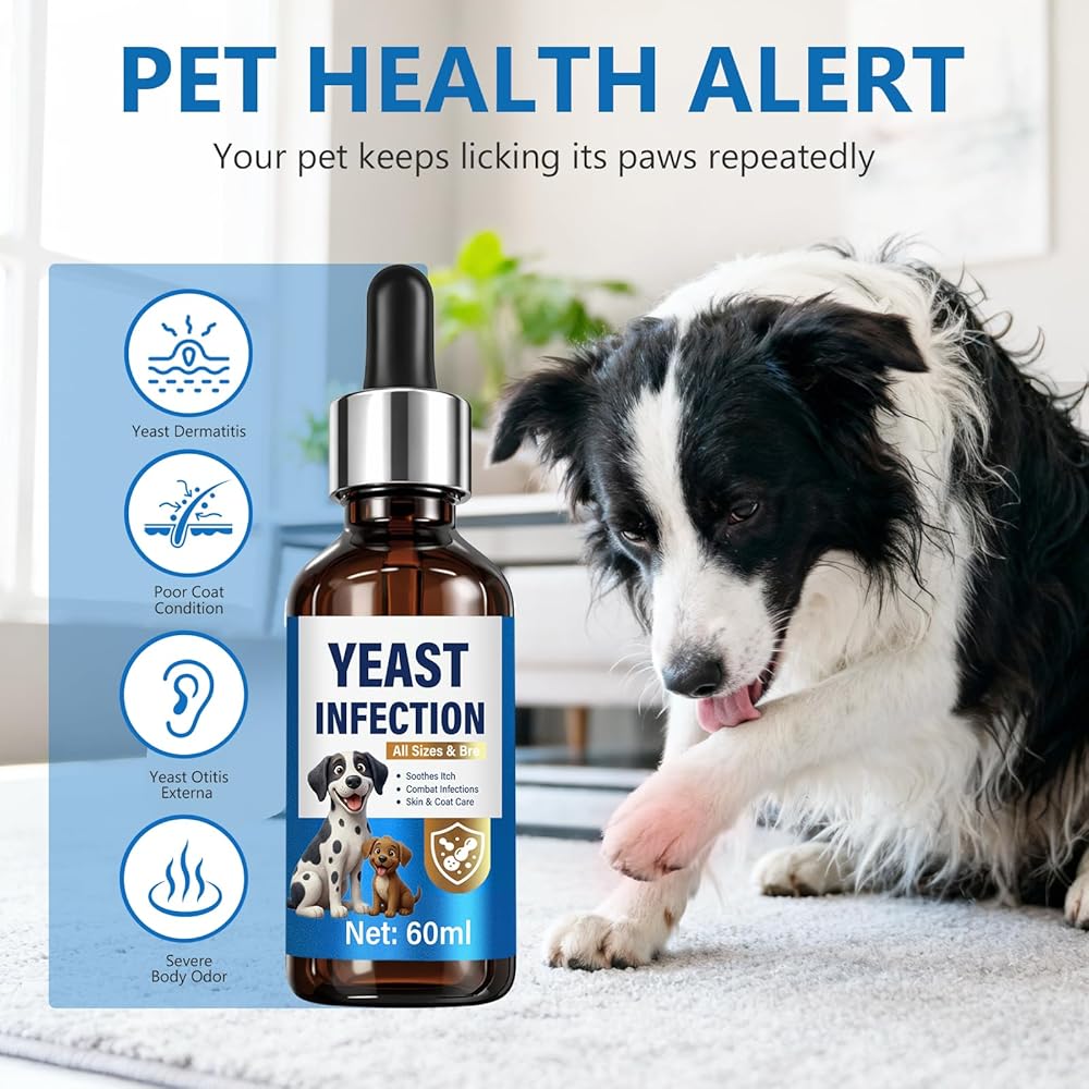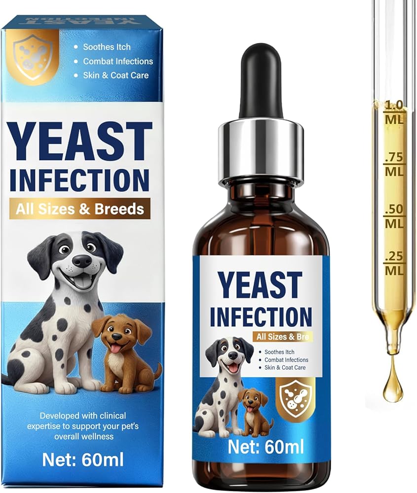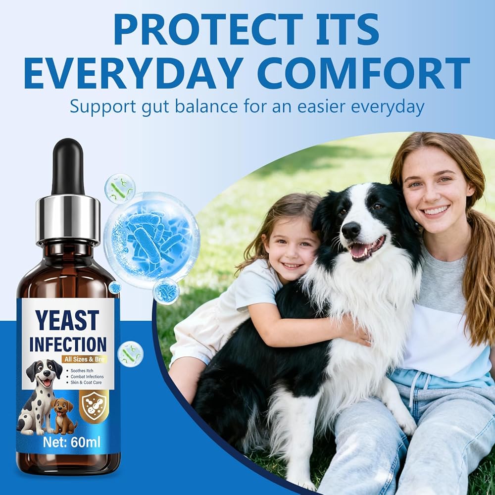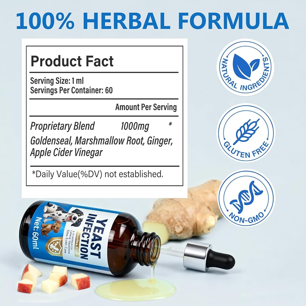 علاج عدوى الخميرة لدعم الكلاب - قطرات علاج عدوى الخميرة الطبيعية للكلاب مع البروبيوتيك والفيتامينات - يخفف من حكة الجلد ولعق المخالب وتهيج الأذن - مكمل صحي للمناعة والأمعاء