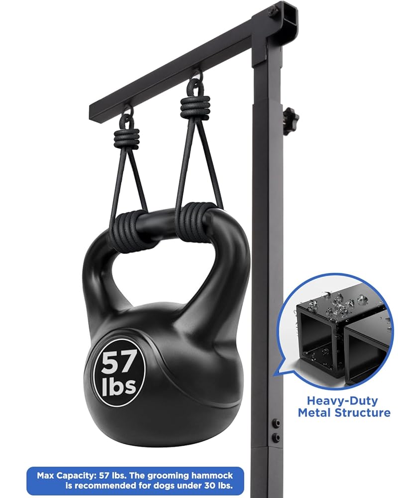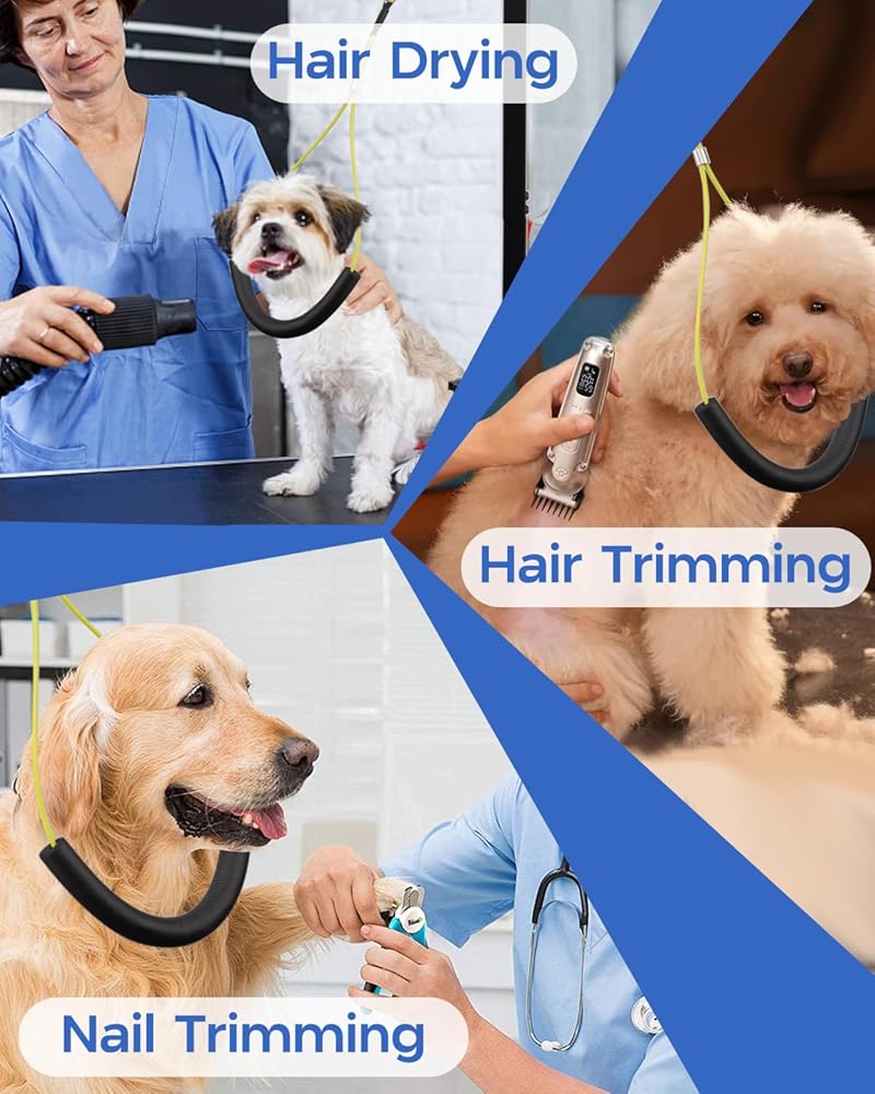 [تصميم عالي التحمل] مصنوع بإطار معدني سميك ومشبك قوي لتحقيق ثبات لا يتزعزع، مما يحافظ على حيوانك الأليف في وضع ثابت وآمن حتى تتمكن من التركيز على التزيين أو التشذيب أو التجفيف بثقة.