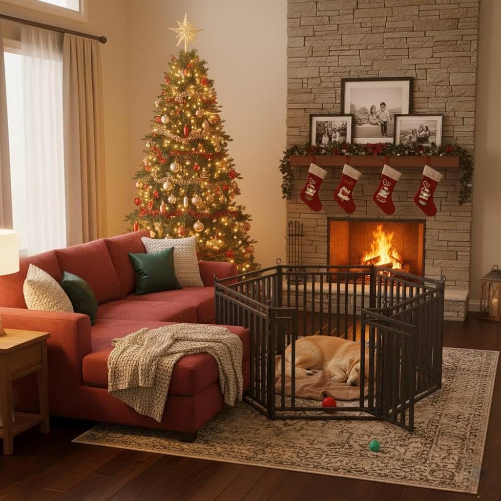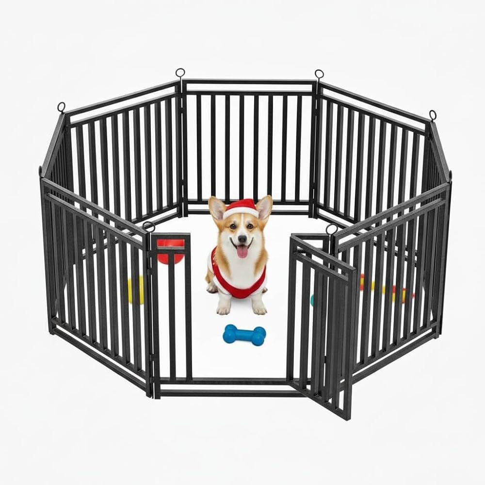 سياج سميك للكلاب، سياج متين وقوي في الهواء الطلق، ارتفاع 81.28 سم، 8 ألواح، محمول وسهل التركيب - مثالي للاستخدام الداخلي والخارجي، تصميم مدمج لسلامة الحيوانات الأليفة