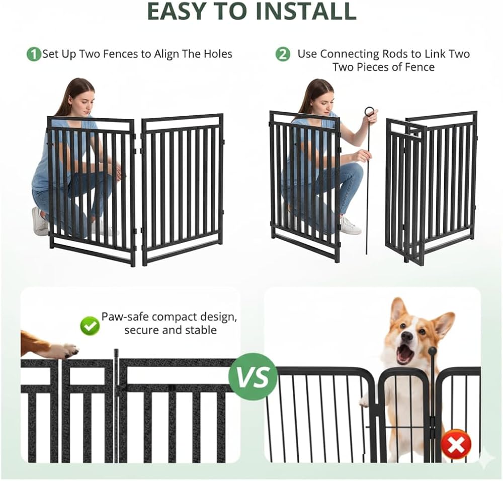 Easy Installation & Safe Design: Compact design ensures pets' paws won't get stuck, enhancing safety. Easy to install with no tools required, perfect for indoor and outdoor use.
