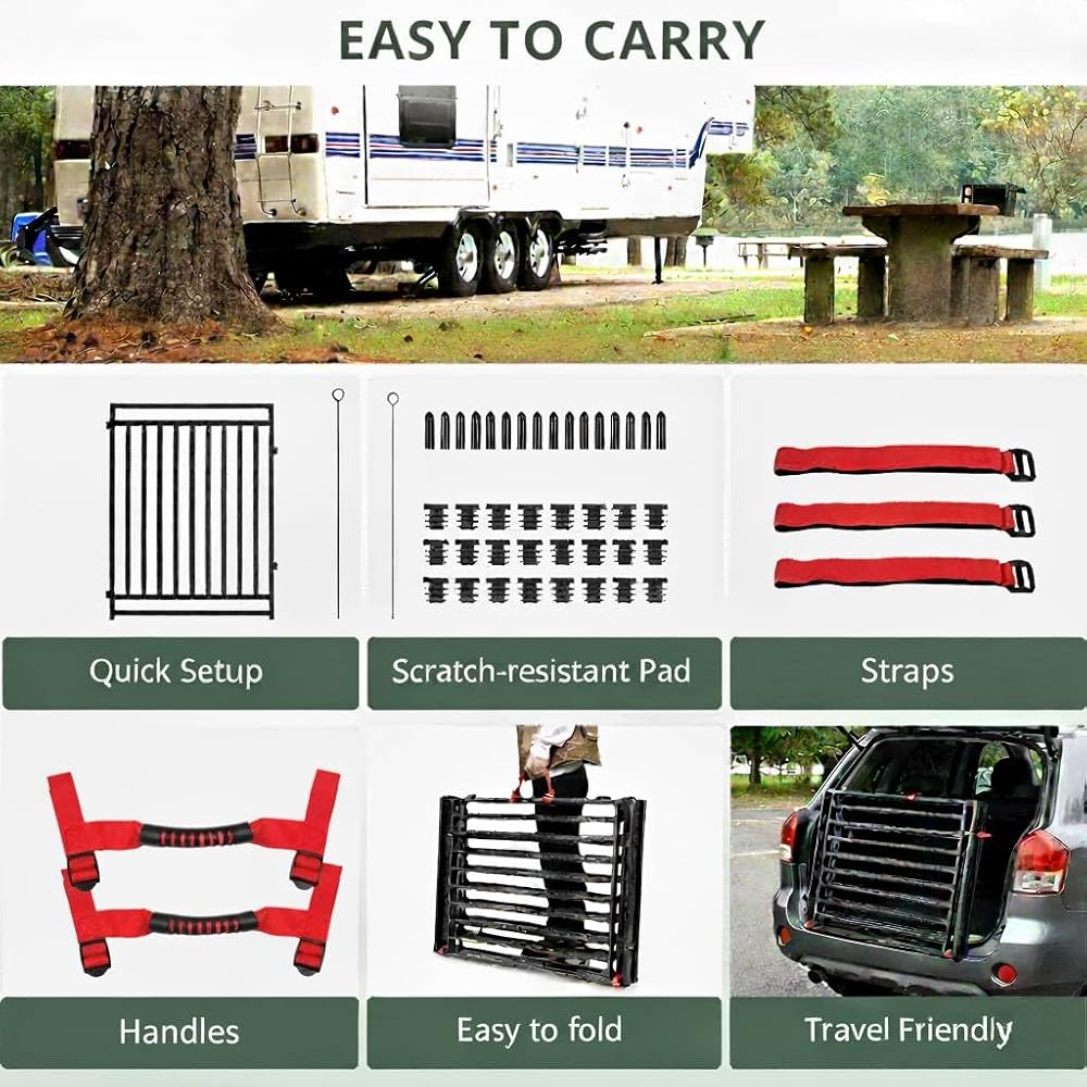 This thickened, durable dog fence is perfect for both indoor and outdoor use. The compact, easy-to-install design keeps your pet safe while preventing paw entrapment. The stylish, scratch-resistant material protects floors, and the handle and strap make it convenient for on-the-go use. Ideal for homes and outdoor activities.