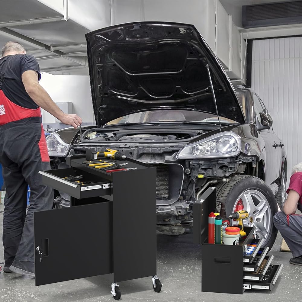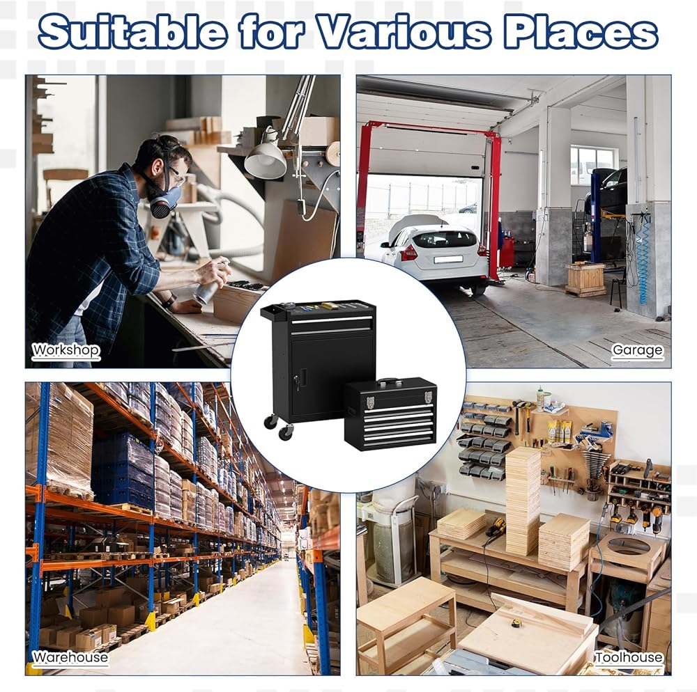 【صندوق أدوات متعدد الاستخدامات】صندوق الأدوات الدوار ذو 5 أدراج مناسب جدًا لورش العمل والجراج. وفي الوقت نفسه، يعتبر صندوق الأدوات ذو العجلات هذا مثاليًا لزوجك أو صديقك أو والدك، وسيحبونه!