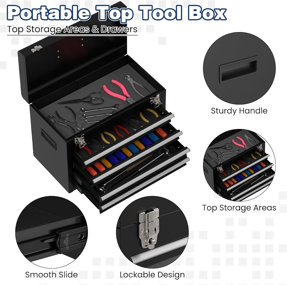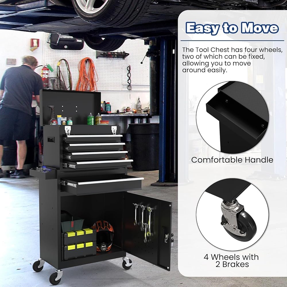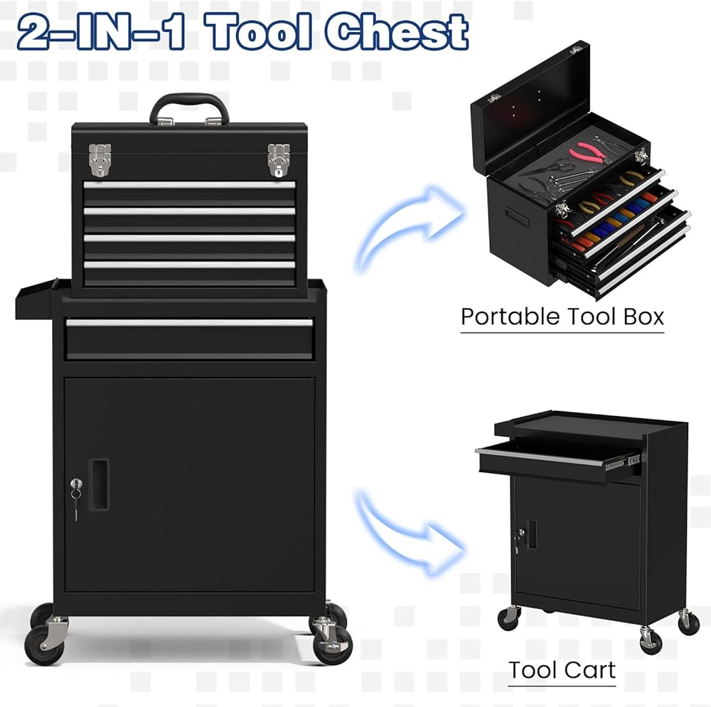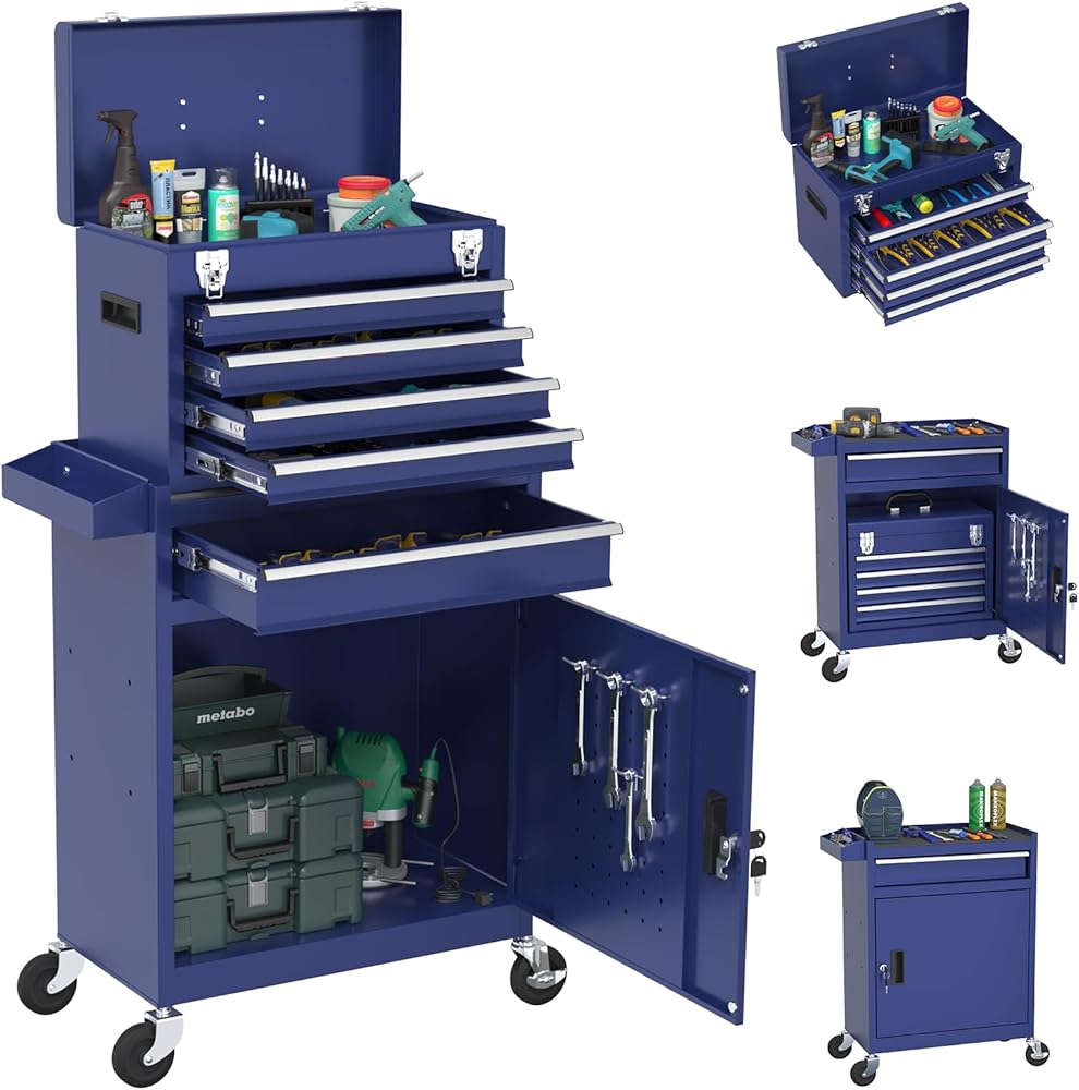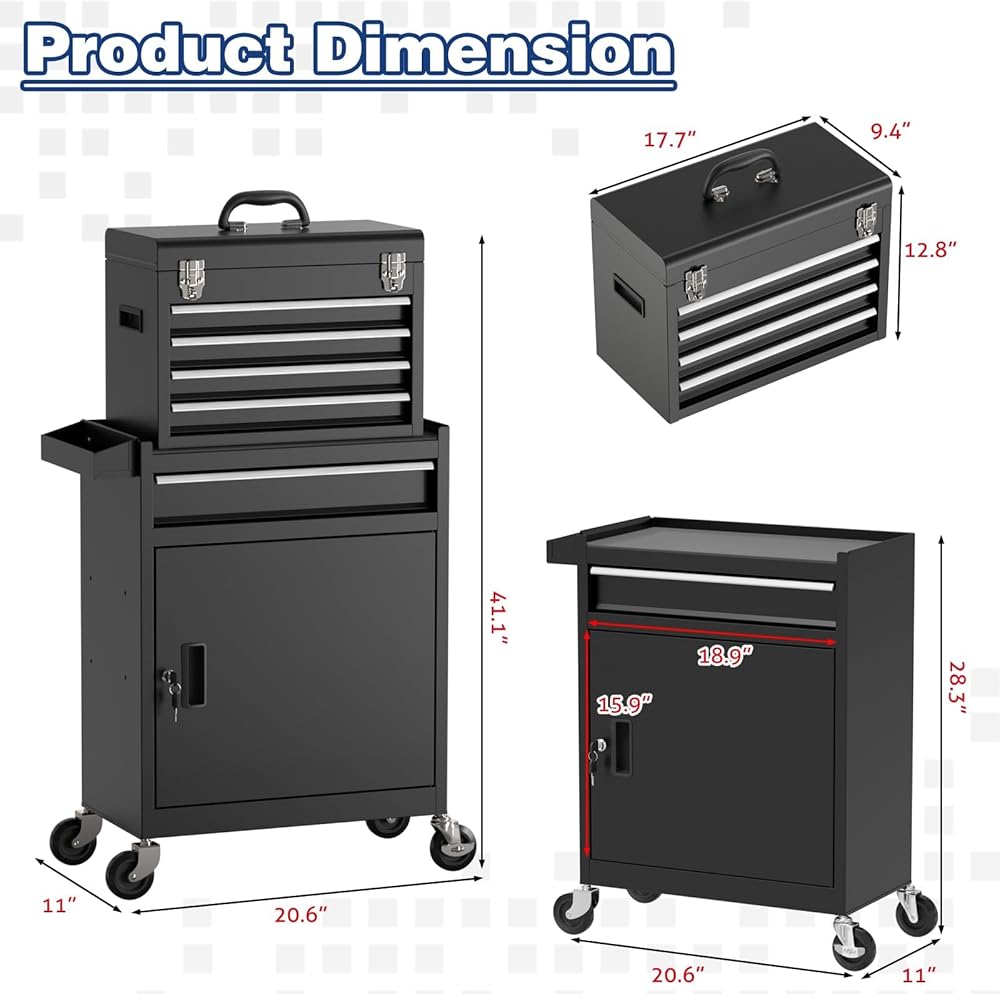 【سعة تخزين كبيرة جدًا】يحتوي صندوق الأدوات هذا على 5 أدراج وخزانة واحدة قابلة للقفل، مما يوفر مساحة كبيرة لأدواتك. 4 أدراج صغيرة ودرج كبير يناسب أحجام مختلفة من الأدوات، مما يجعل من السهل عليك العثور على الأدوات التي تحتاجها.