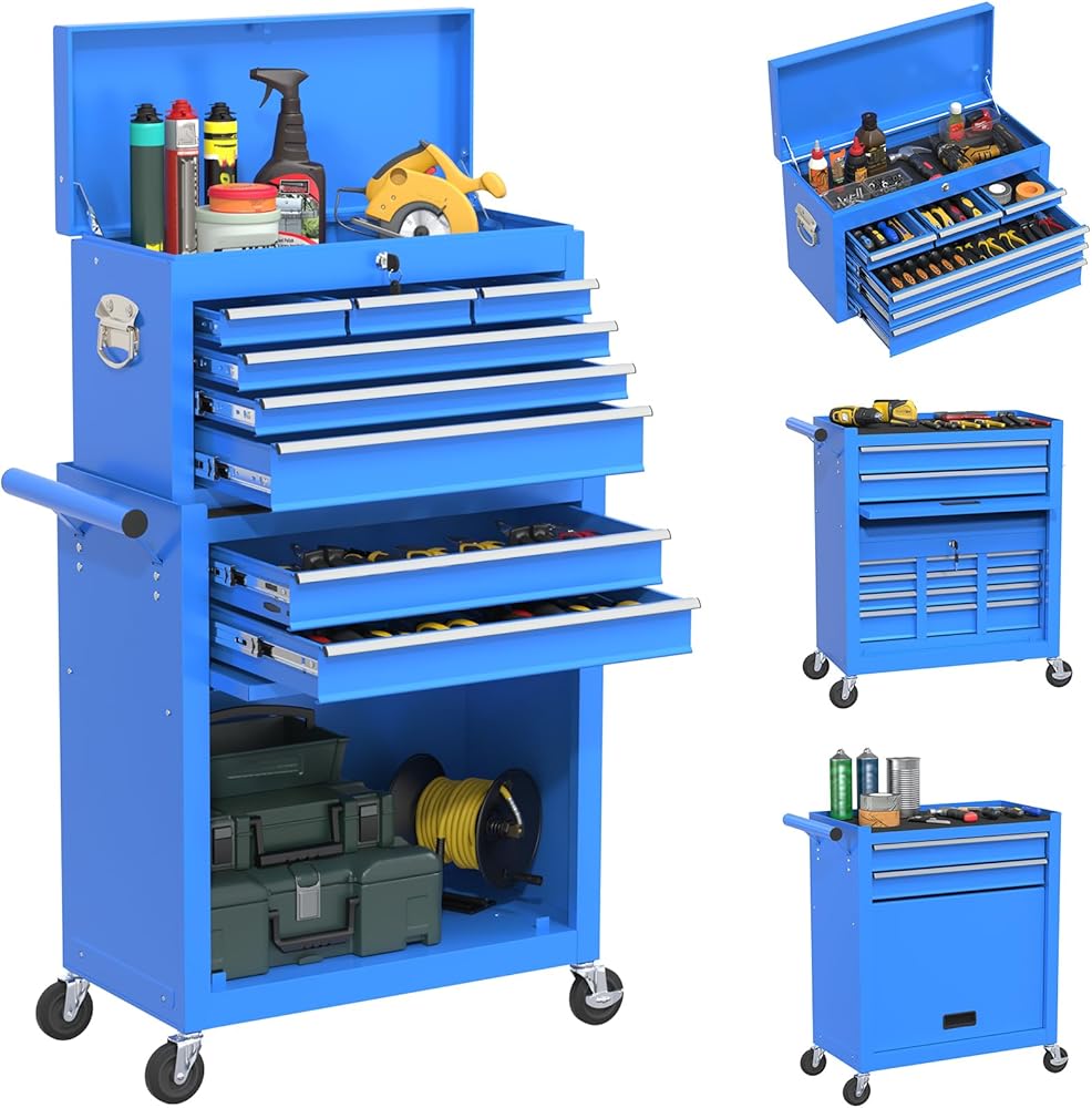 【خامة عالية الجودة】صندوق الأدوات الدوارة مصنوع من الفولاذ المتين لضمان المتانة والسلامة. عجلاتها مصنوعة من مادة مركبة من المطاط والبلاستيك، وهي مناسبة للاستخدام الداخلي والخارجي.