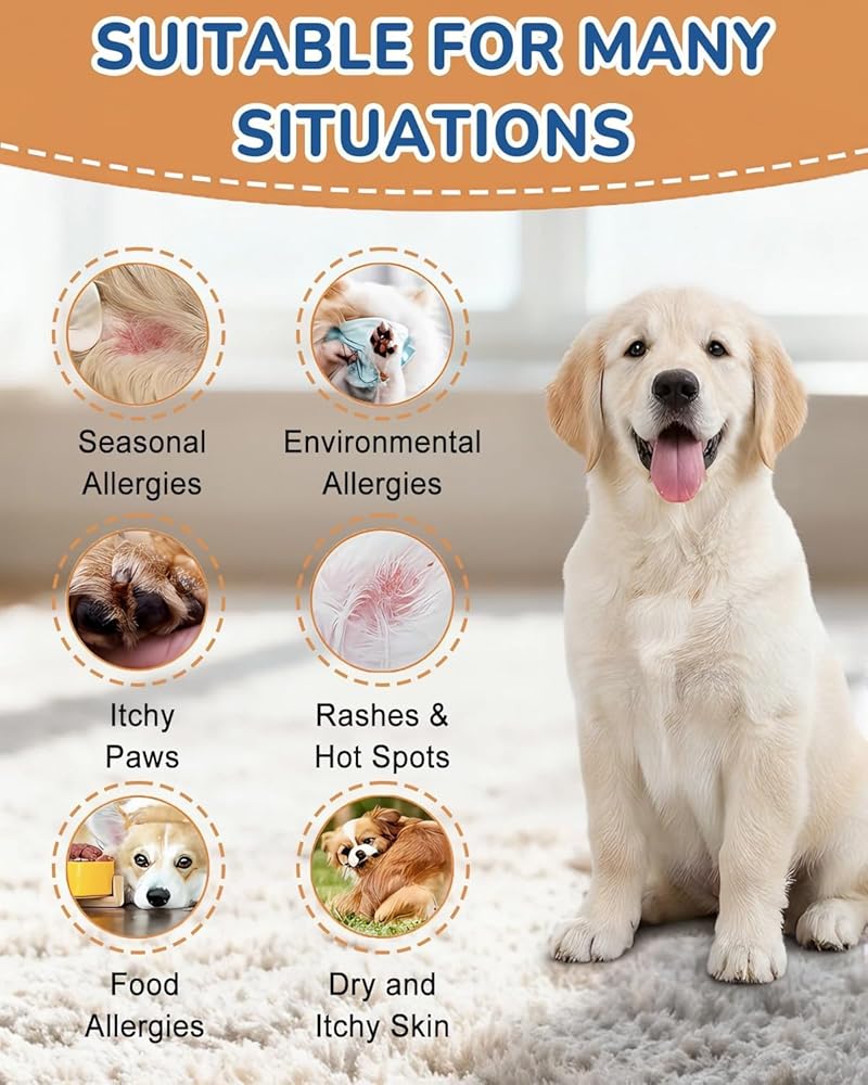 ✔【تخفيف سريع من مسببات الحساسية】: قل وداعًا للخدش المستمر لكلبك ولعق مخالبه! تستهدف مضغ حساسية الكلاب السبب الجذري للحكة، مما يوفر راحة ملحوظة خلال 3 أيام. يقلل من احمرار الجلد والتهابات الأذن وتخفيف الحكة الجلدية للكلاب بنسبة تصل إلى 80%. مثالي للكلاب التي تعاني من حساسية الكلاب أو تخفيف الحكة في جلد الكلاب، لطيف على كلبك.