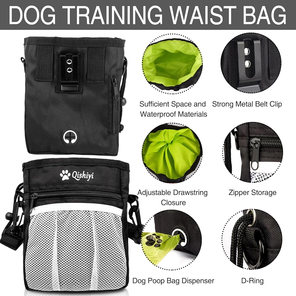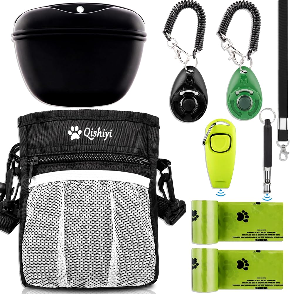 Qishiyi Dog Training Kit,includes Pet Training Waist,Bag 2 Dog Training Clickers,Treat Pouch,Ultrasonic Silent Whistle,2 in 1 Whistle Clicker Clicker,Training Guide Booklet,2 Dog Poop Bags