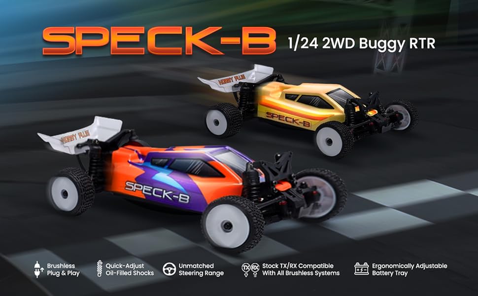 سيارة HOBBYPLUS Speck B 1/24 2WD Mini RC - RTR RC Buggy، عربة سباق صغيرة سريعة، جاهزة بدون فرش مع صدمات مملوءة بالزيت - مركبات سباق سيارات داخلية ممتعة للتحكم عن بعد للبالغين (برتقالي)