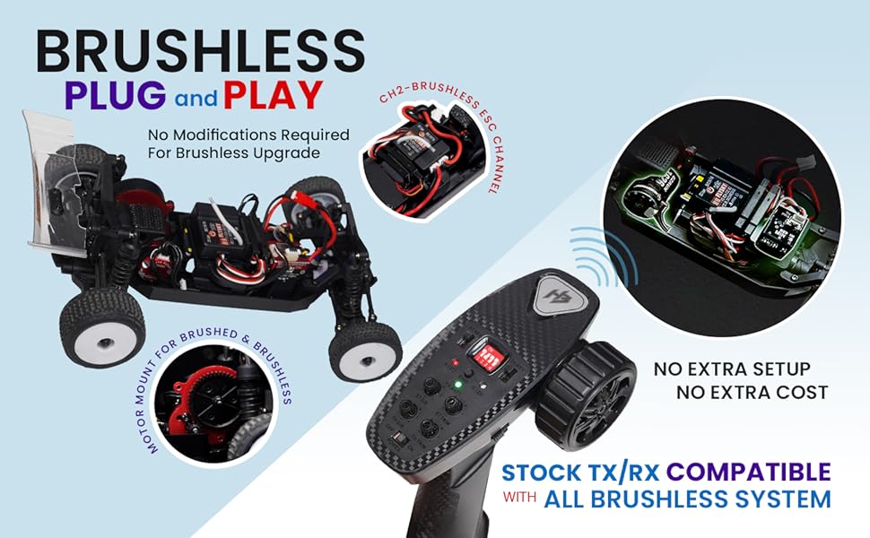ترقية التوصيل والتشغيل بدون فرش - قم بتحويل عربة RC الصغيرة الخاصة بك إلى سيارة RC بدون فرش مع راحة التوصيل والتشغيل الحقيقية. لا حاجة إلى قطع الهيكل أو إجراء تغييرات عليه - فقط قم بتوصيله وتشغيله وتجربة أداء سريع لسيارات RC بشكل لم يسبق له مثيل.