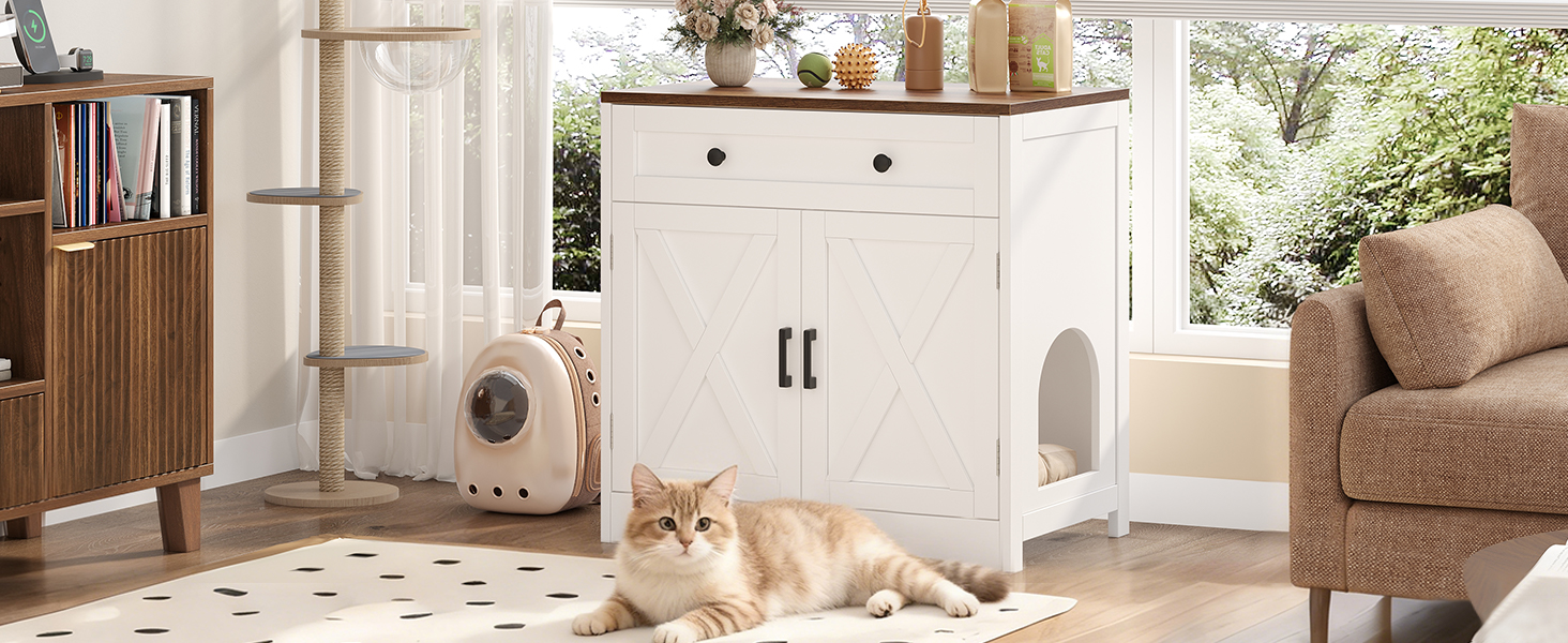 أثاث أنيق متعدد الوظائف: أكثر من مجرد صندوق فضلات مخفي، هذه القطعة بمثابة بيت للقطط، أو طاولة جانبية ساحرة، أو طاولة قهوة. تصميمها من فئة الأثاث يكمل بسلاسة غرفة المعيشة أو غرفة النوم أو ديكور المدخل.
