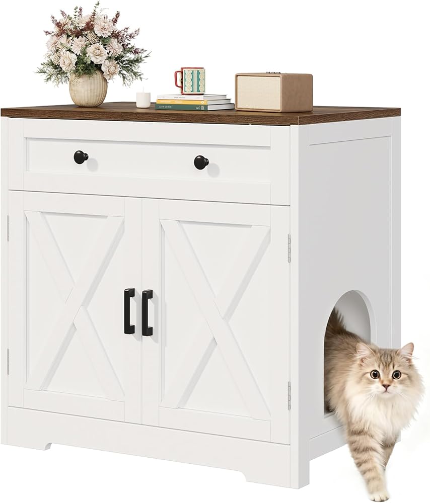 حمام خاص صديق للحيوانات الأليفة: امنح قطتك هدية الخصوصية مع حاوية صندوق القمامة هذه. فهو يضم صندوق الفضلات في الخزانة السفلية بشكل خفي لاحتواء الروائح، بينما يمكن تجهيز المساحة العلوية بسرير وألعاب لخلق ملاذ مريح.