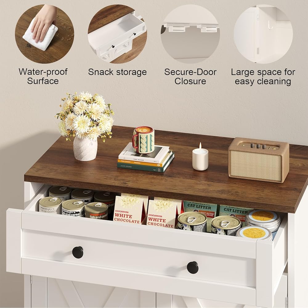 تخزين مريح وسهل التنظيف: تم تصميم أثاث صندوق الفضلات هذا لتوفير الراحة. تتضمن أدراج تخزين للإمدادات، وأبواب مزدوجة لسهولة الوصول إلى القمامة، وسطح مقاوم للماء لتنظيف سريع وسهل.