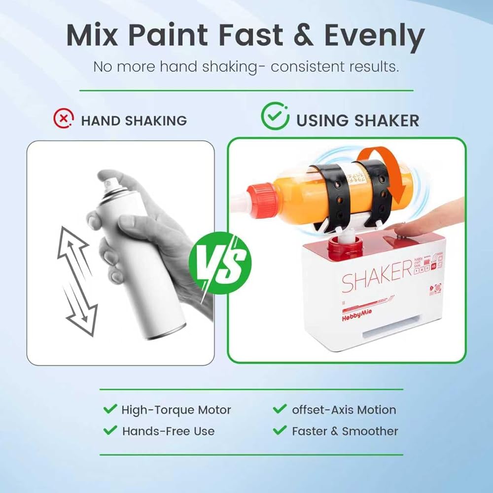 ماكينة رش طلاء مطورة لطلاءات النماذج - خلاط زجاجات متأرجح عالي الطاقة للأكريليك والأحبار والأصباغ والمواد اللاصقة ومستلزمات الهوايات | تصميم لقط بدون استخدام اليدين، خلط سريع لمدة 10 ثوانٍ